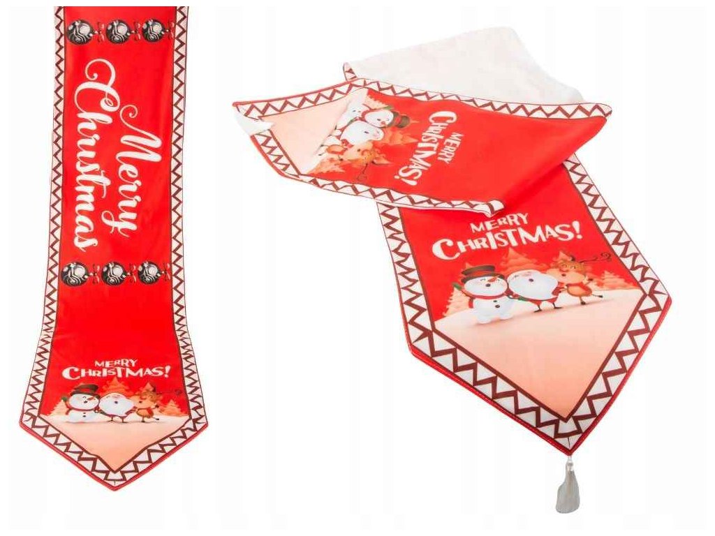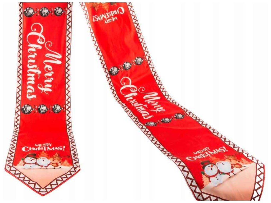 Je vyroben z vysoce kvalitního materiálu a zdobí ho krásný vzor s vyobrazením sněhuláka, Santa Clause a soba. Je zakončen nápadnými střapci.