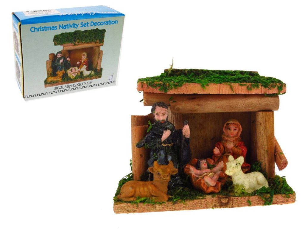 Vyrobený z přírodního dřeva, doplněný realistickými figurkami a mechem na střeše, působí autenticky a útulně. Díky kompaktním rozměrům se skvěle hodí na okenní parapet, poličku nebo vánoční stůl. Tento betlém je ideální volbou pro všechny, kteří milují tradiční dekorace s duchovním nádechem.