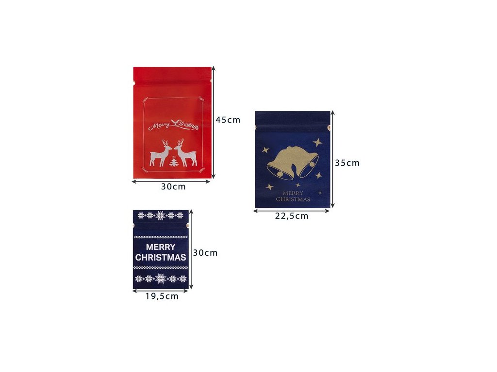 - TŘI VELIKOSTI SÁČKU - Ciťte se jako Santa Claus a zabalte své dárky do vánočních tašek, které jsou ideální pro balení dárků pro děti i dospělé. Můžete do nich zabalit různé dárky - od malých a lehkých dárků až po mnohem těžší dárkové sady . Na výběr máme ze tří velikostí tašek: 4 kusy 20x30, 2 kusy 23x35 a 2 kusy 30x45.