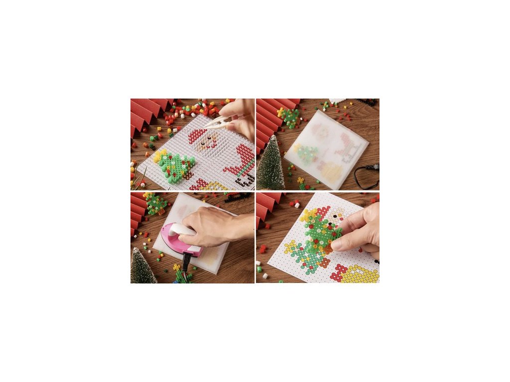 Sada 6 000 korálků z vánoční série s doplňky v dítěti vyvolá chuť aranžovat a hrát si, bude si moci vytvořit pohádkově barevné obrázky různých tvarů, možností je mnoho - dítě může vytvářet různé postavičky nebo zvířátka. Vytvořením několika vrstev šablony můžeme vytvořit 3D postavy!