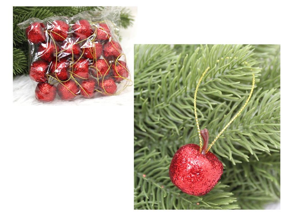 Vánoční ozdoba - 2,5 cm JABLKO ČERVENÝ GLITTER - sada 18 ks