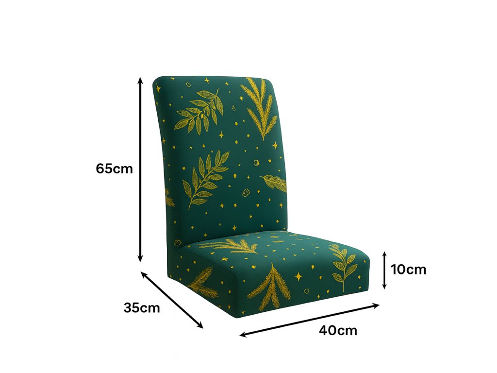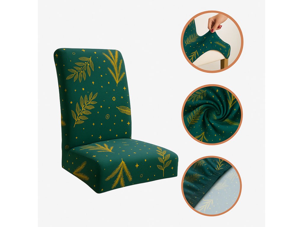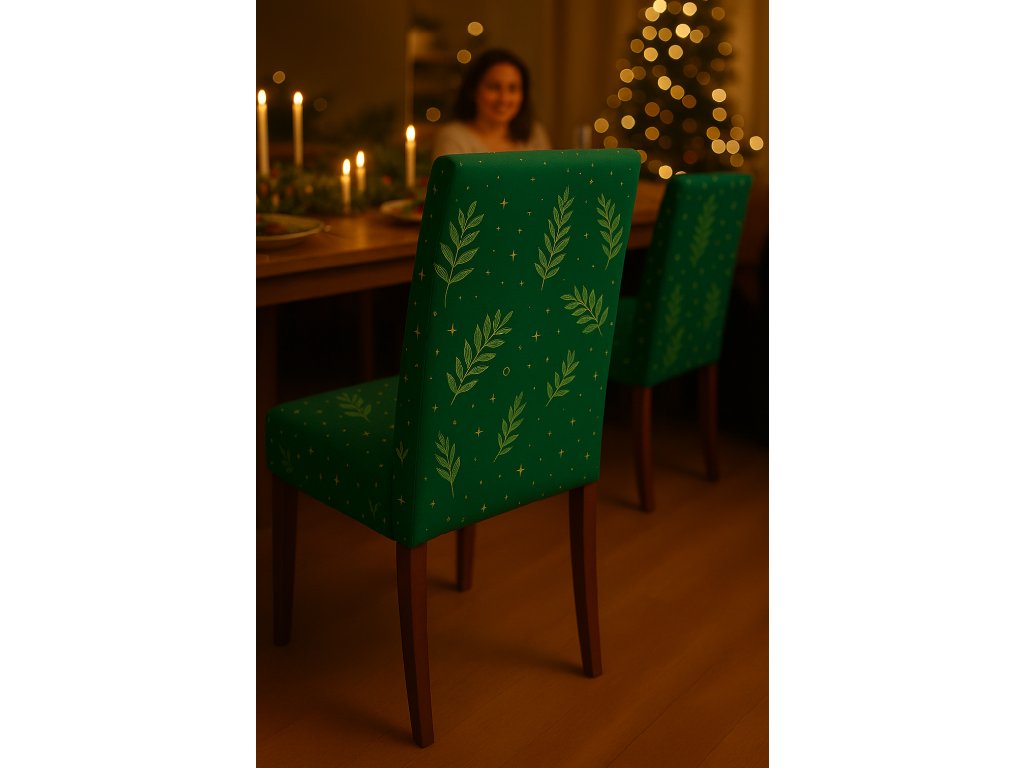 Dodejte svému domovu kouzelnou sváteční atmosféru s touto sadou vánočních napínacích potahů na židle. Elegantní tmavě zelený design se zlatavým vánočním motivem větviček a hvězd okamžitě oživí vaši jídelnu, ochrání židle před opotřebením a vytvoří harmonický, útulný prostor pro vánoční setkávání s rodinou.