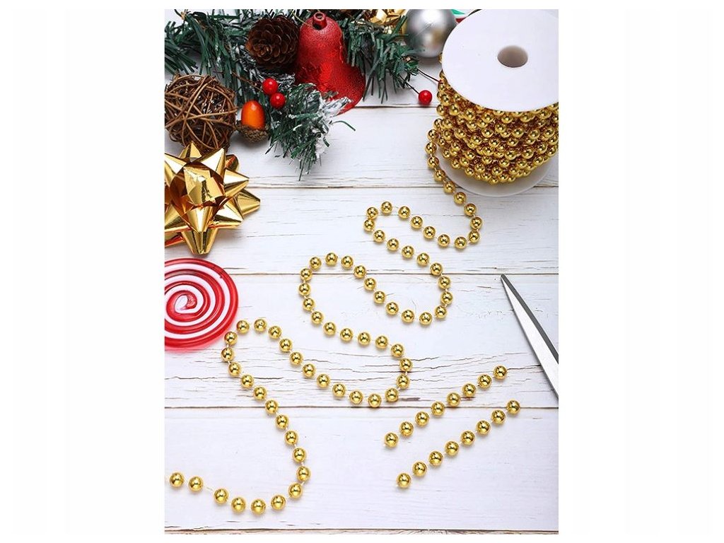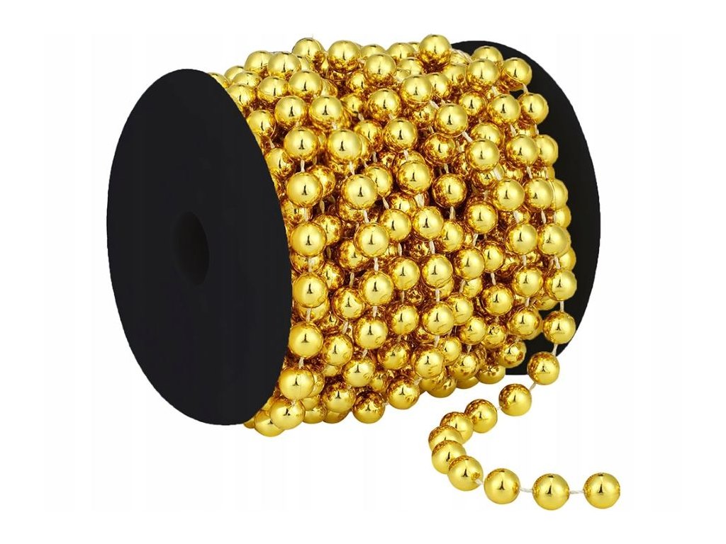 Vánoční řetěz korálky 5 m, vánoční ozdoba zlatá