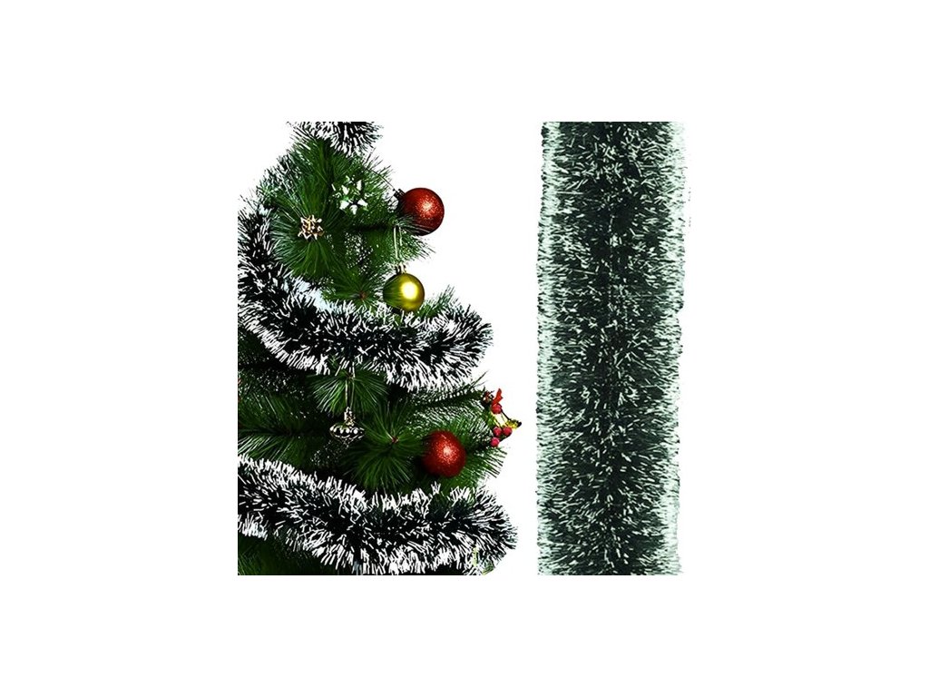 DLOUHÝ A SILNÝ VÁNOČNÍ VĚNEC / ŘETĚZ NA VÁNOČNÍ STROMEK 6 METRŮ / 15 cm BÍLOZELENÁ