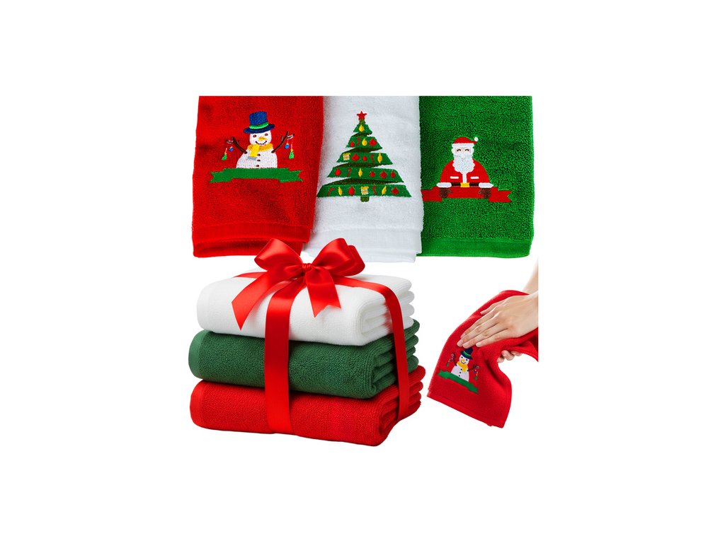 Vánoční ručníky, 3 ks, bavlna s výšivkou: červená, zelená, bílá, 30x40 cm – praktická sada, která navodí vánoční atmosféru!