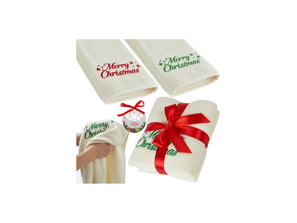 - 2 vánoční ručníky - Bílá s vyšívaným nápisem "Veselé Vánoce"