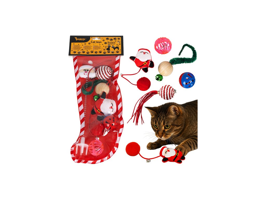 Hračky pro kočky, vánoční sada hraček 6 ks míčků s pružinami a bambulkou!