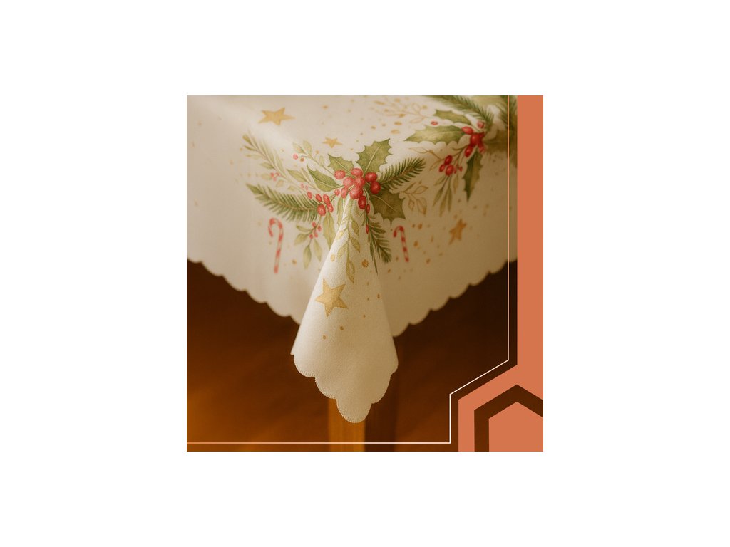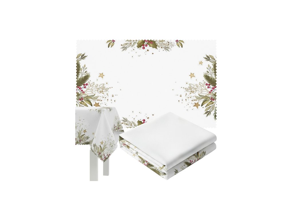 Vánoce jsou časem setkávání, tepla a společných chvil u stolu… Vánoční ubrus vytváří pro tyto okamžiky dokonalou kulisu – hladká bílá s jemným potiskem dodá každému jídlu slavnostní a elegantní vzhled. povrch odolný vůči skvrnám chrání před nechtěnými překvapeními a tkaný polyester zaručuje odolnost , díky které vás bude doprovázet nejen během těchto, ale i příštích svátků. Je to víc než jen ubrus - je to základní výzdoba nejdůležitějšího stolu roku , což stmeluje rodinu a zdůrazňuje vánoční atmosféru.