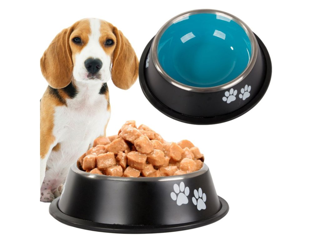 Vyrobeno z nerezové oceli, má protiskluzovou gumu, která zabraňuje pohybu misky na jídlo.
