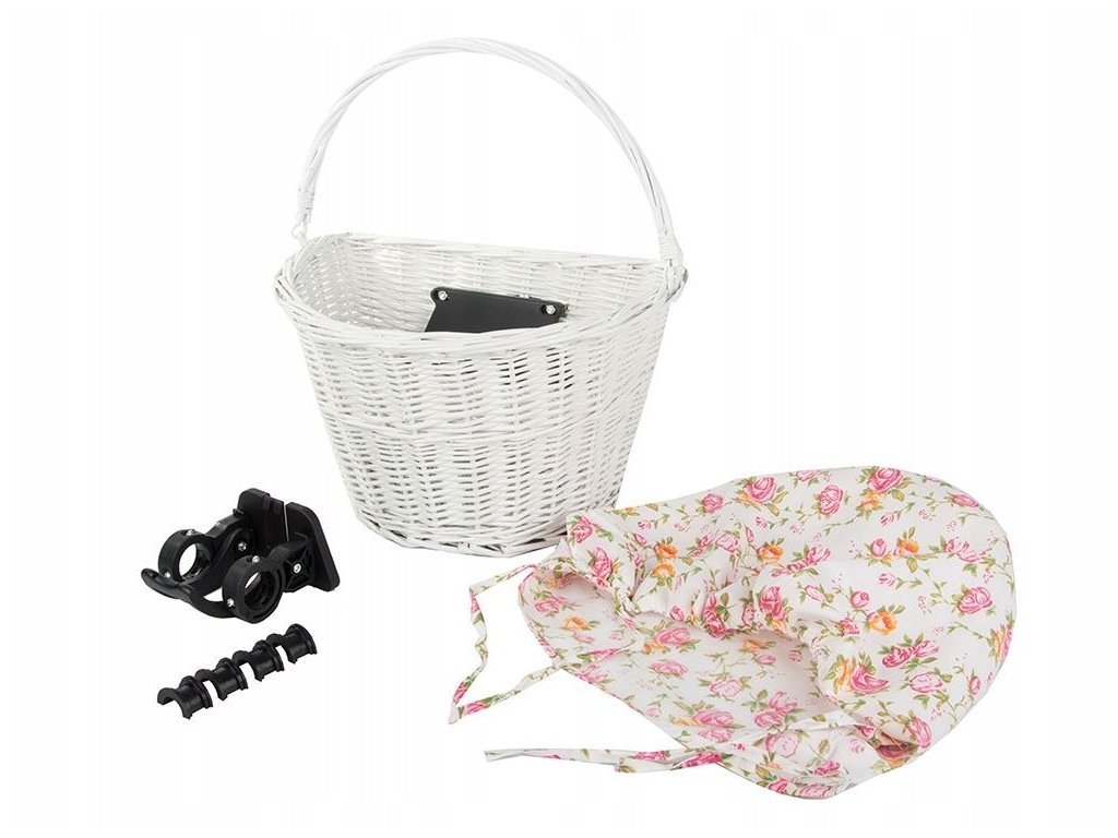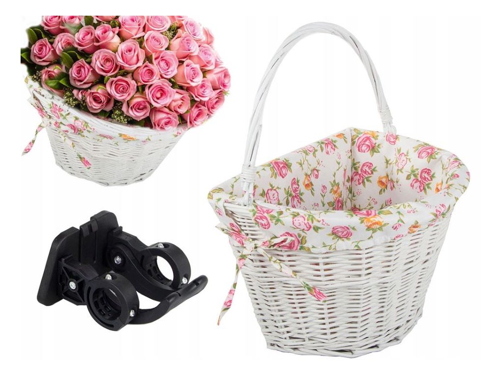 Velký proutěný košík na kolo, košík na řídítka kola, květinový vzor
