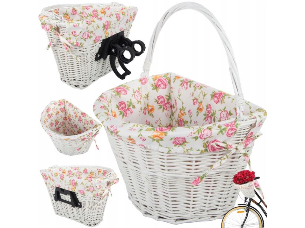 Okouzlující, proutěný košík na kolo v elegantní bílé barvě, který dodá vašemu kolu jedinečné kouzlo. Perfektní pro každodenní nákupy, přepravu domácích mazlíčků nebo jednoduše na výlety po okolí.