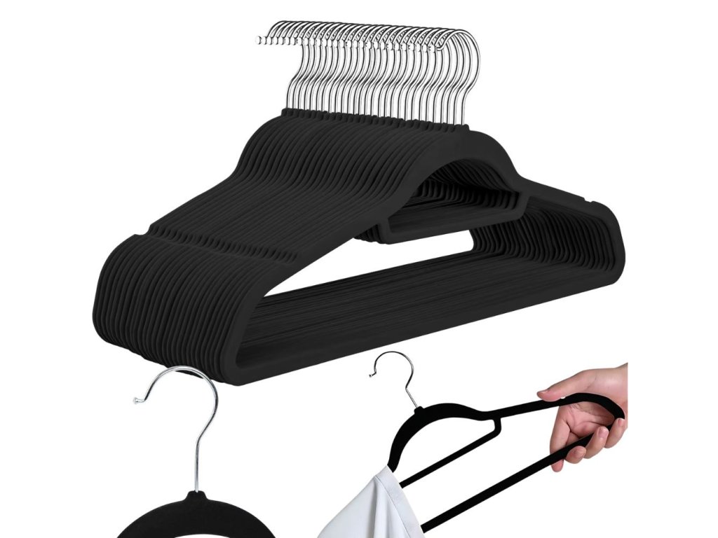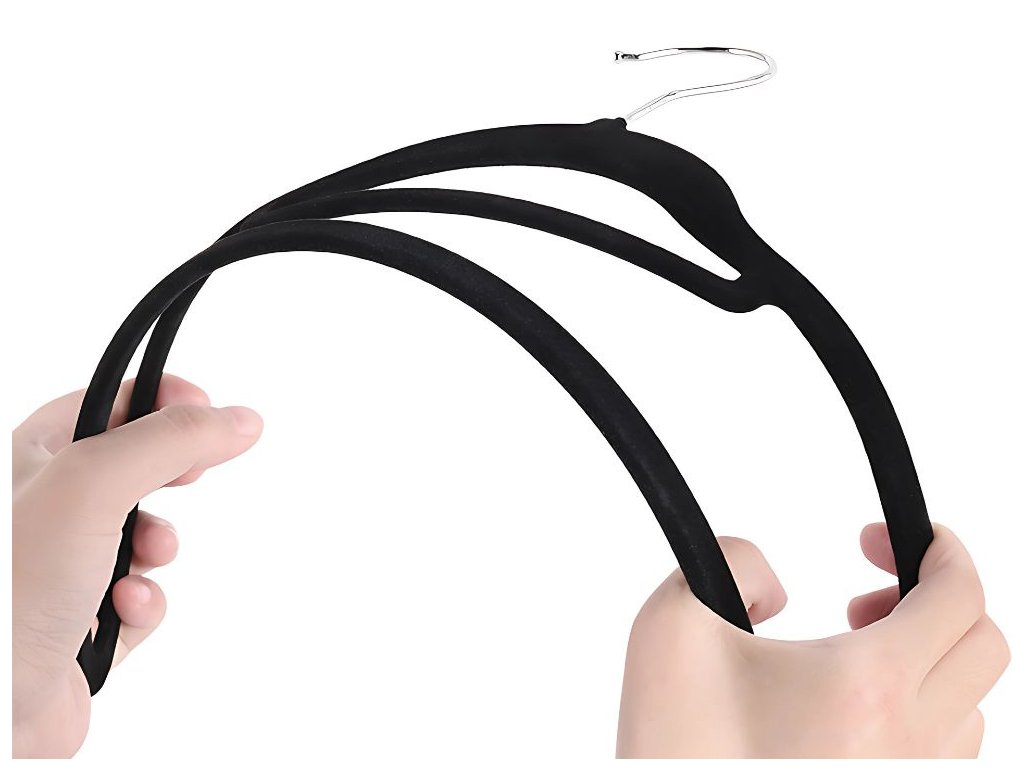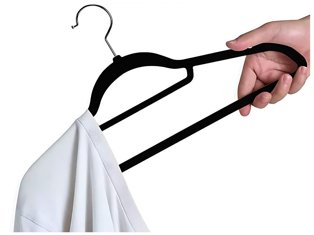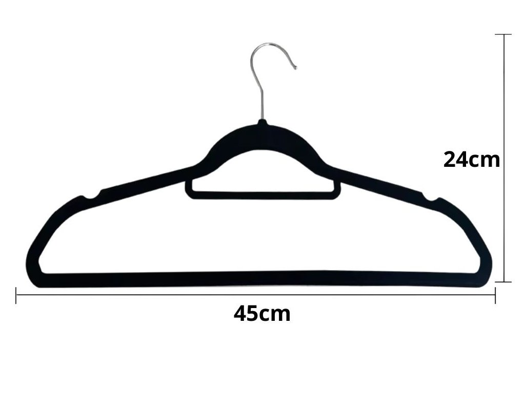 VELUROVÁ RAMÍNKA NA OBLEČENÍ ČERNÁ PROTISKLUZOVÁ SADA 20 KUSŮ