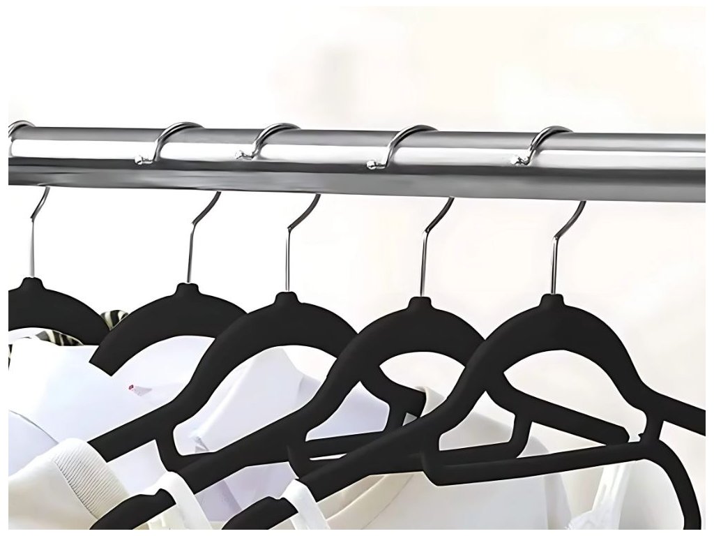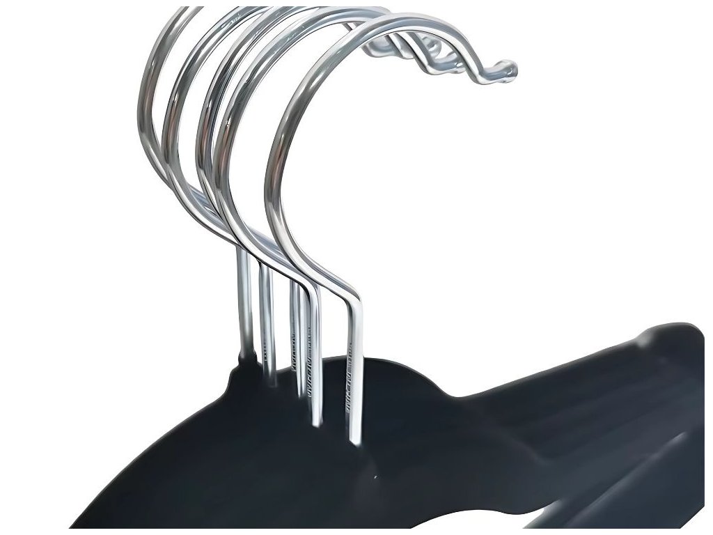 Každé ramínko je vybaveno robustním kovovým háčkem, který se otáčí o 360°, což usnadňuje věšení oblečení v jakémkoli směru. Díky velurovému potahu zůstanou na svém místě i hedvábné halenky, šaty nebo košile. Další výřezy po stranách umožňují zavěšení ramínek, což z něj činí velmi univerzální řešení.