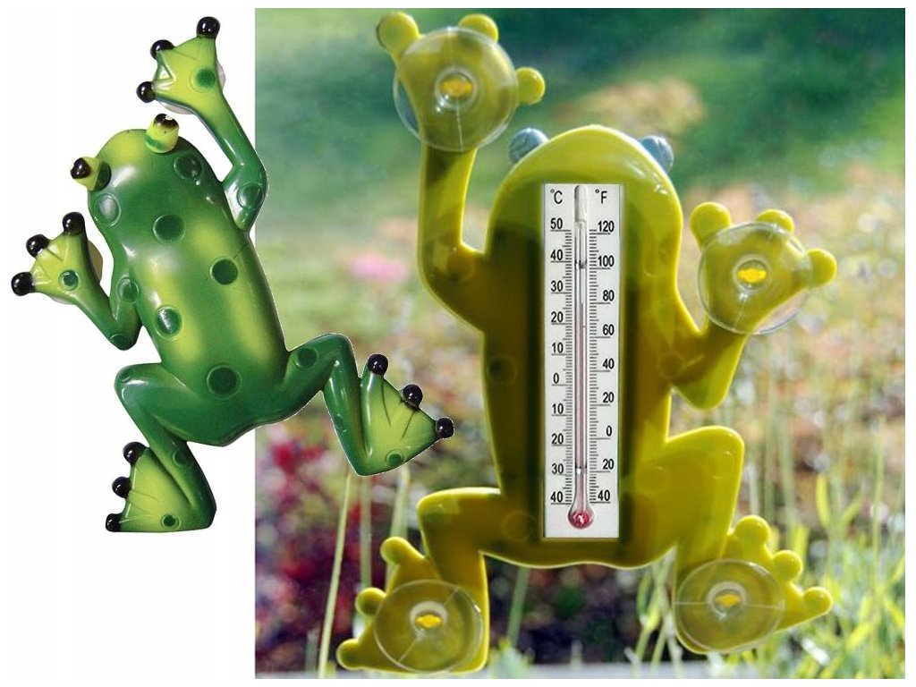 Venkovní okenní teploměr s přísavkami, žába