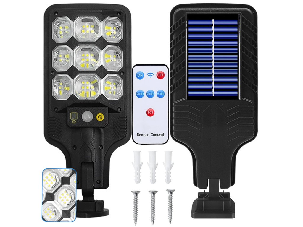 SOLÁRNÍ LED POULIČNÍ LAMPA SE SENZOREM POHYBU A DÁLKOVÝM OVLÁDÁNÍM