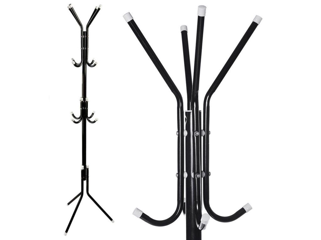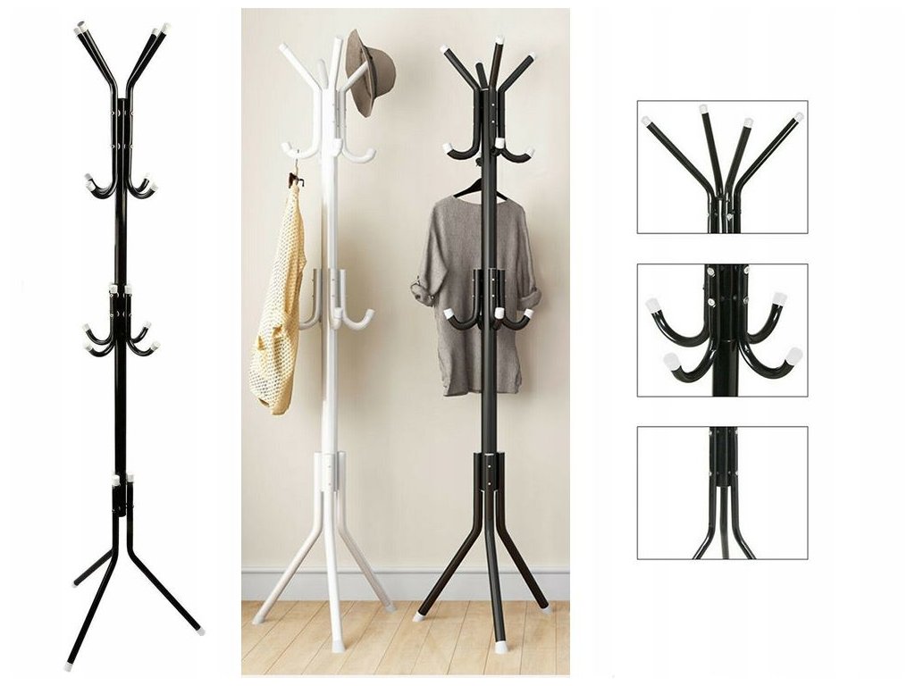 Praktický a moderní věšák vhodný do každého umístění : domů, kanceláře, obchodu nebo kadeřnictví. Konstrukce věšáku je stabilní Vyrobeno z práškově lakované oceli. Model má 8 ramen nahoře ve dvou úrovních a 4 ramena umístěná ve střední části konstrukce.