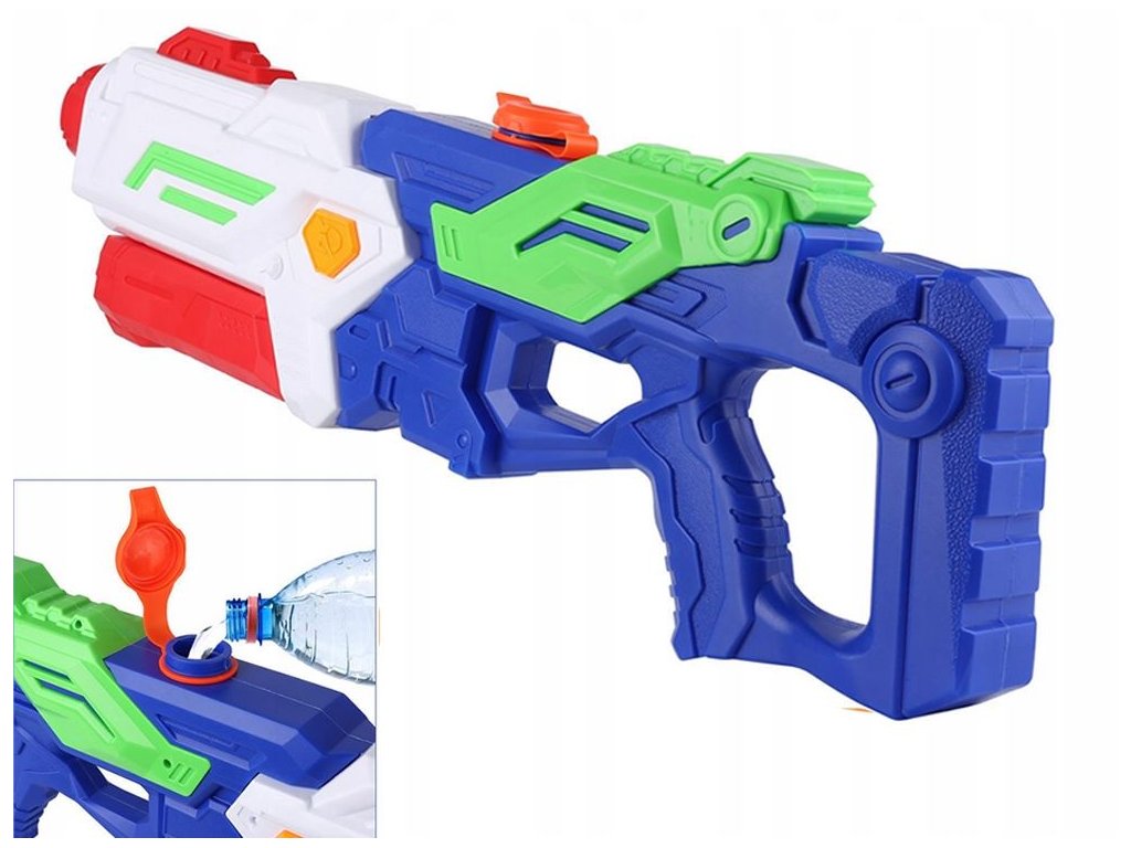 Tato jedinečná vodní pistole byla navržena pro maximální zábavu a je vybavena velkou nádrží na vodu o objemu přibližně 0,5 litru a čerpacím systémem, který umožňuje vodní výstřely na velké vzdálenosti.