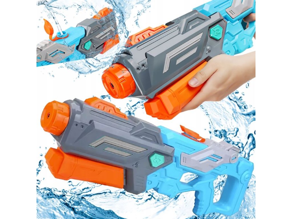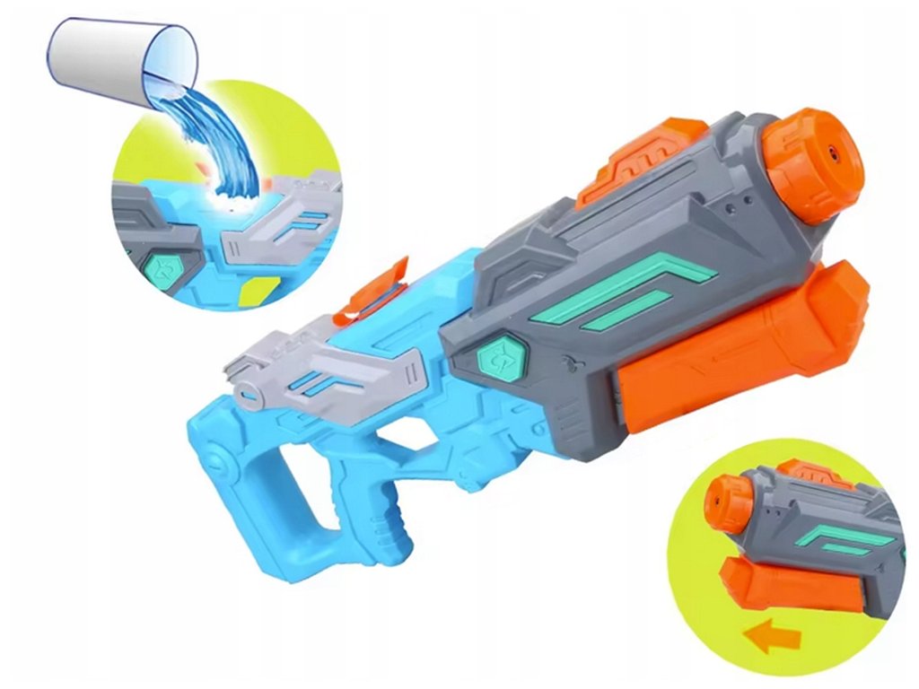 Tato jedinečná vodní pistole byla navržena pro maximální zábavu a je vybavena velkou nádrží na vodu o objemu přibližně 0,5 litru a čerpacím systémem, který umožňuje vodní výstřely na velké vzdálenosti.