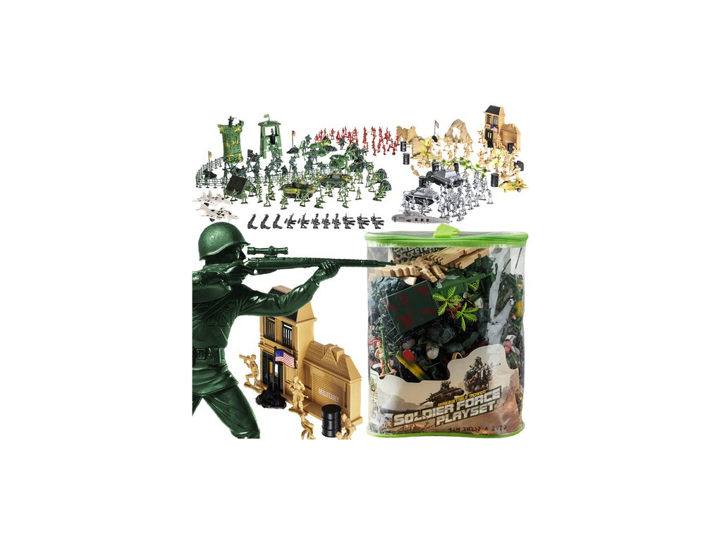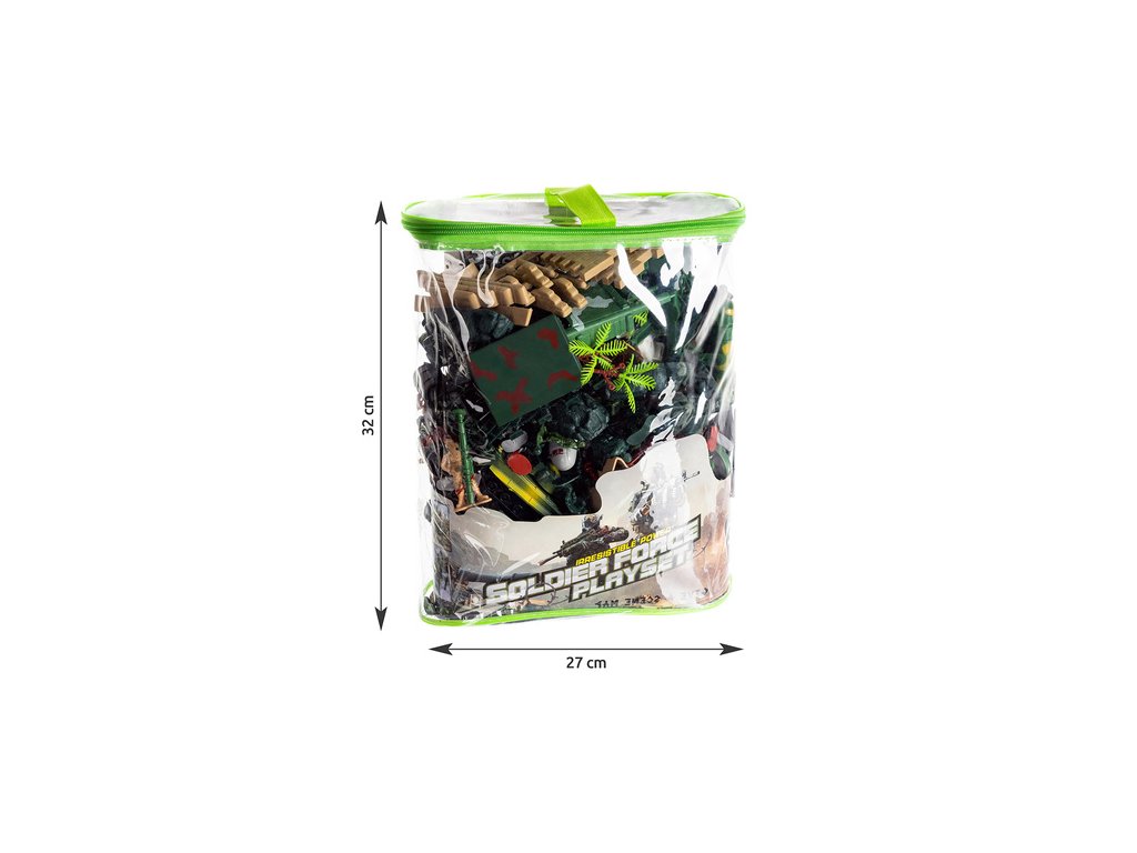 sada obsahuje všechny potřebné prvky - sada obsahuje až 300 prvků, včetně vojáků, tanků, letadel, zbraní, budov a mnoha doplňků, které umožní realistickou vojenskou hru