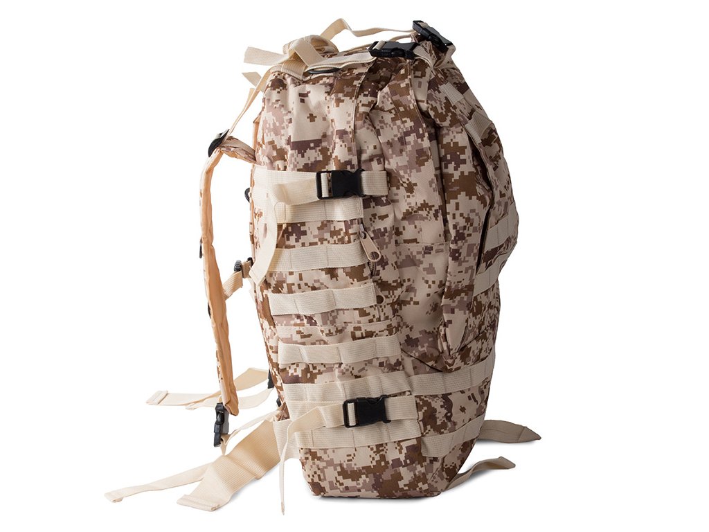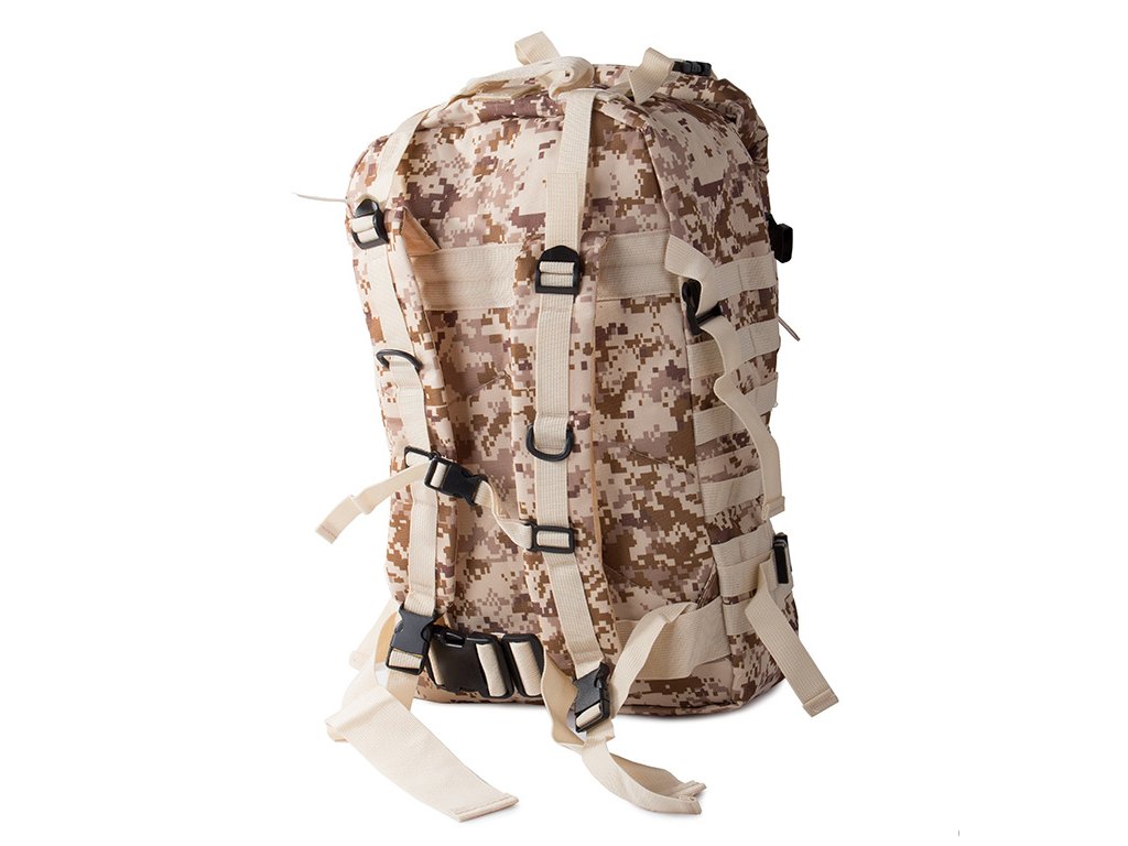 Batoh má nastavitelné MOLLE úchyty, což umožňuje přidat do tašky další kapsy a moduly. Dodatečně vybavena hrudním a bederním pásem - umožňuje ulevit páteři a ramenům při dlouhých cestách. Nastavitelné popruhy jsou užitečné zejména při přenášení věcí, jako jsou bundy, stany, podložky na spaní. Bederní pás má pevnou přezku a nastavení délky. Po zapnutí pásem je batoh velmi stabilní a při nošení se nenaklání do stran.