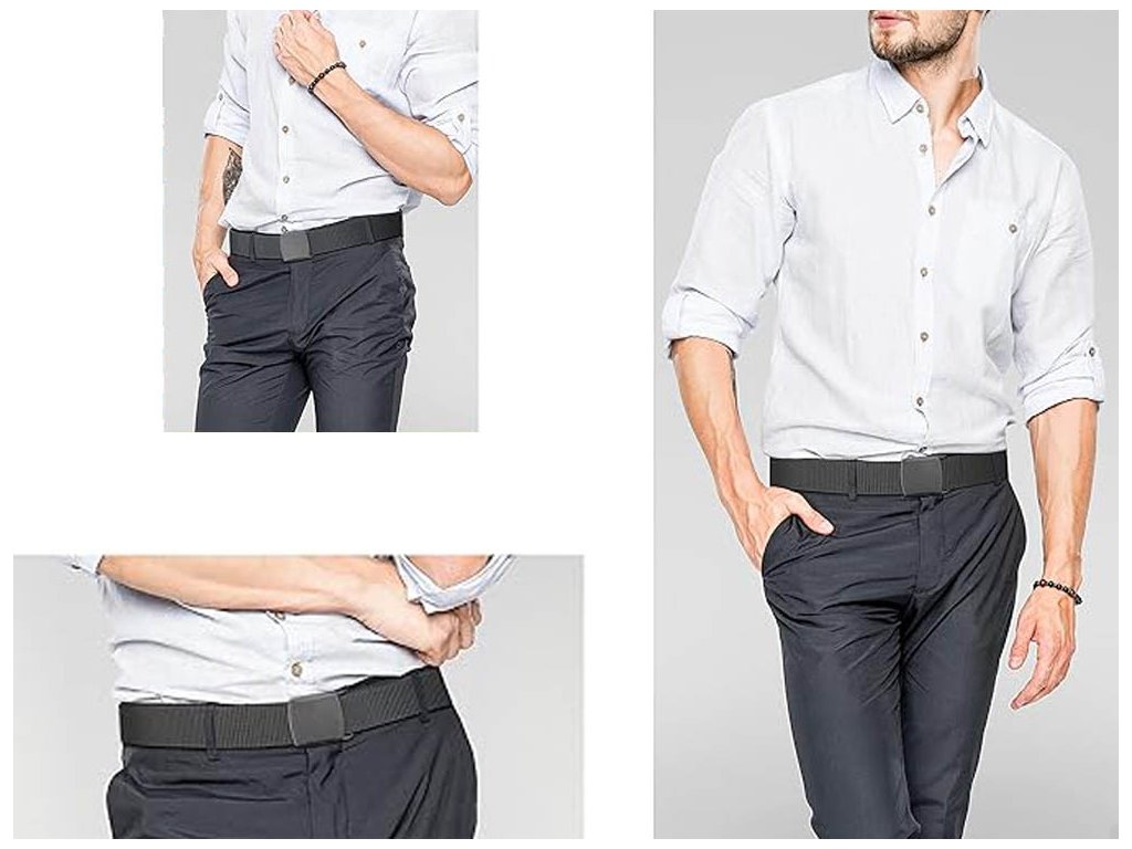 Praktický opasek s plastovou sponou. Bez kovových částí.