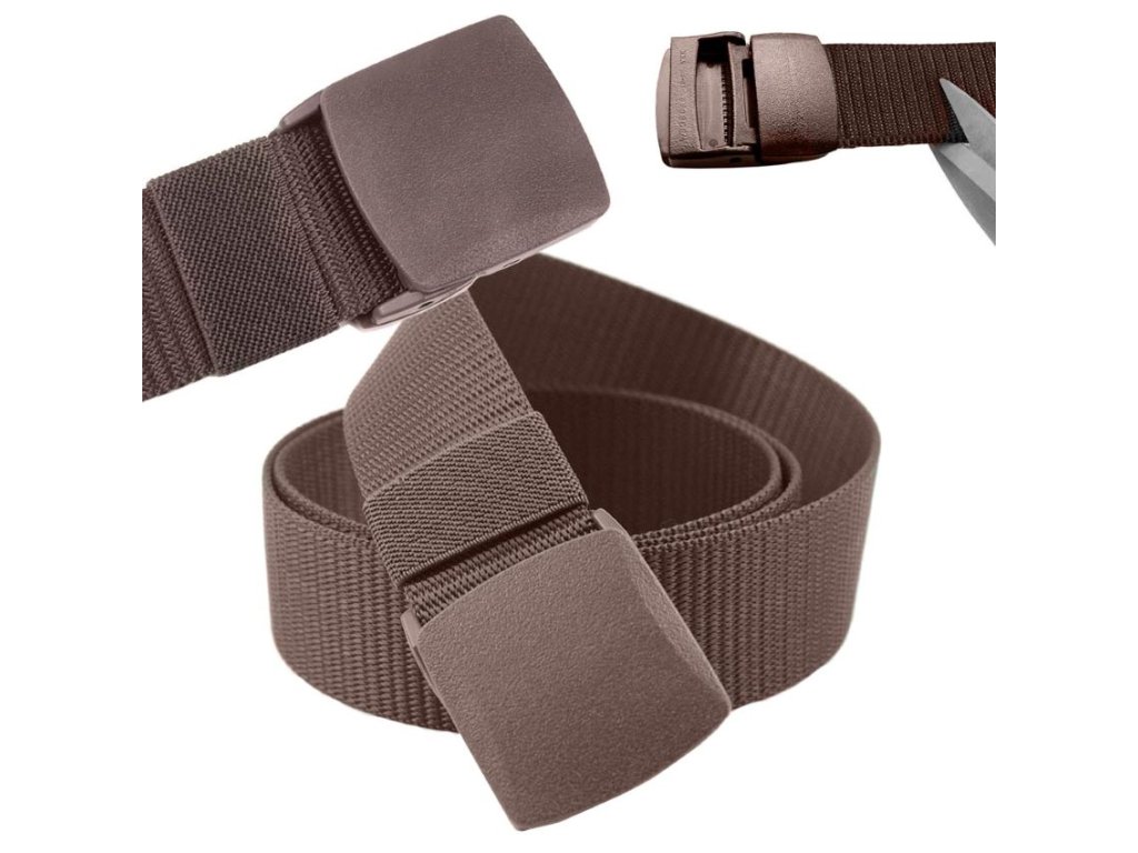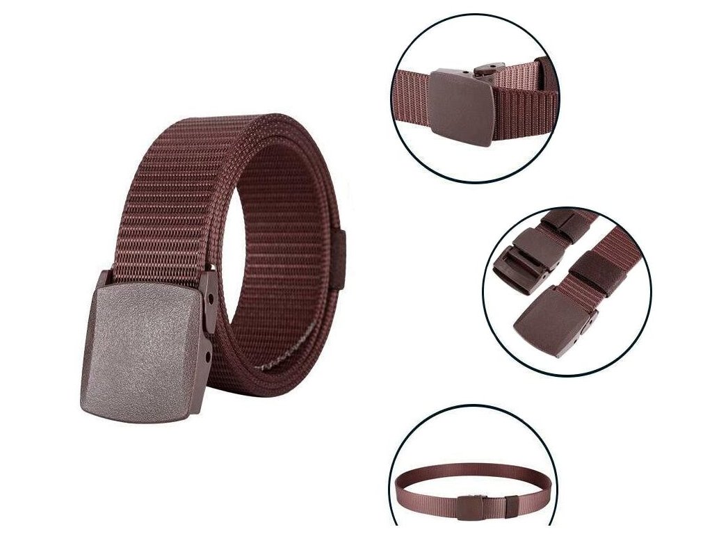 Praktický opasek s plastovou sponou. Bez kovových částí.