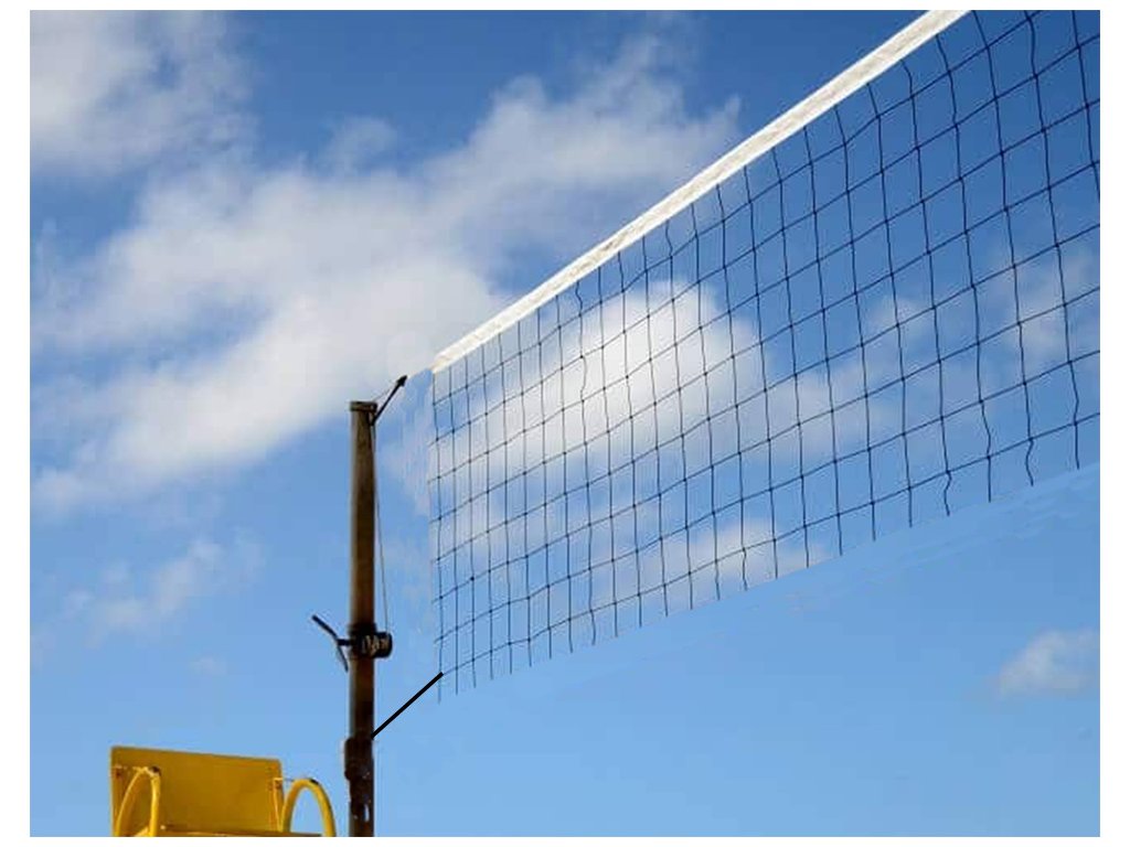 Volejbalová síť o rozměru 9,5 m x 1 m vhodná pro venkovní i vnitřní použití. Může být namontován na sloupky, přivázán ke stromu nebo jiným stabilním prvkům.