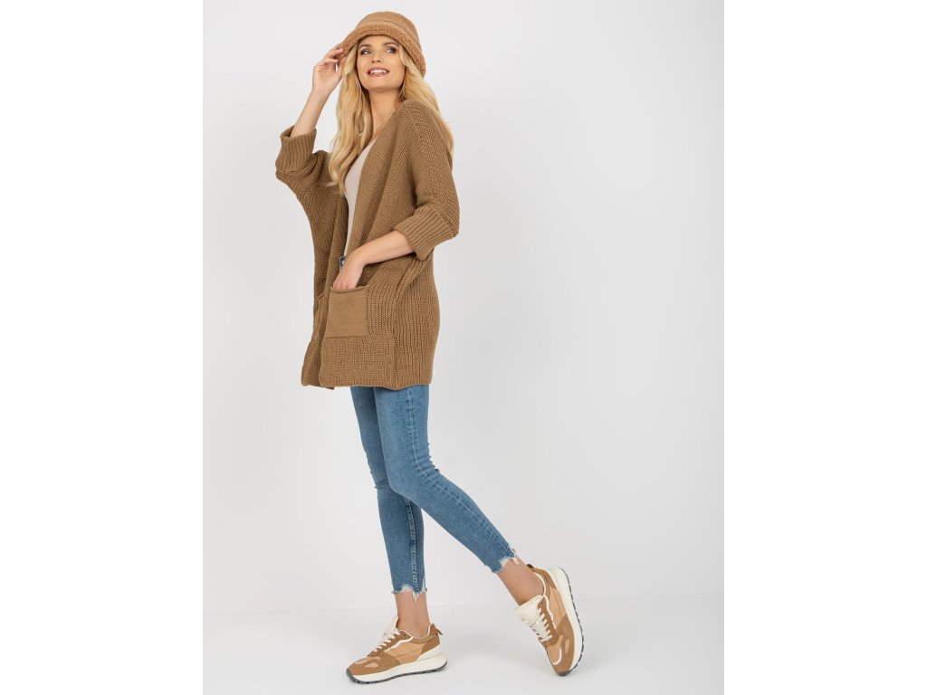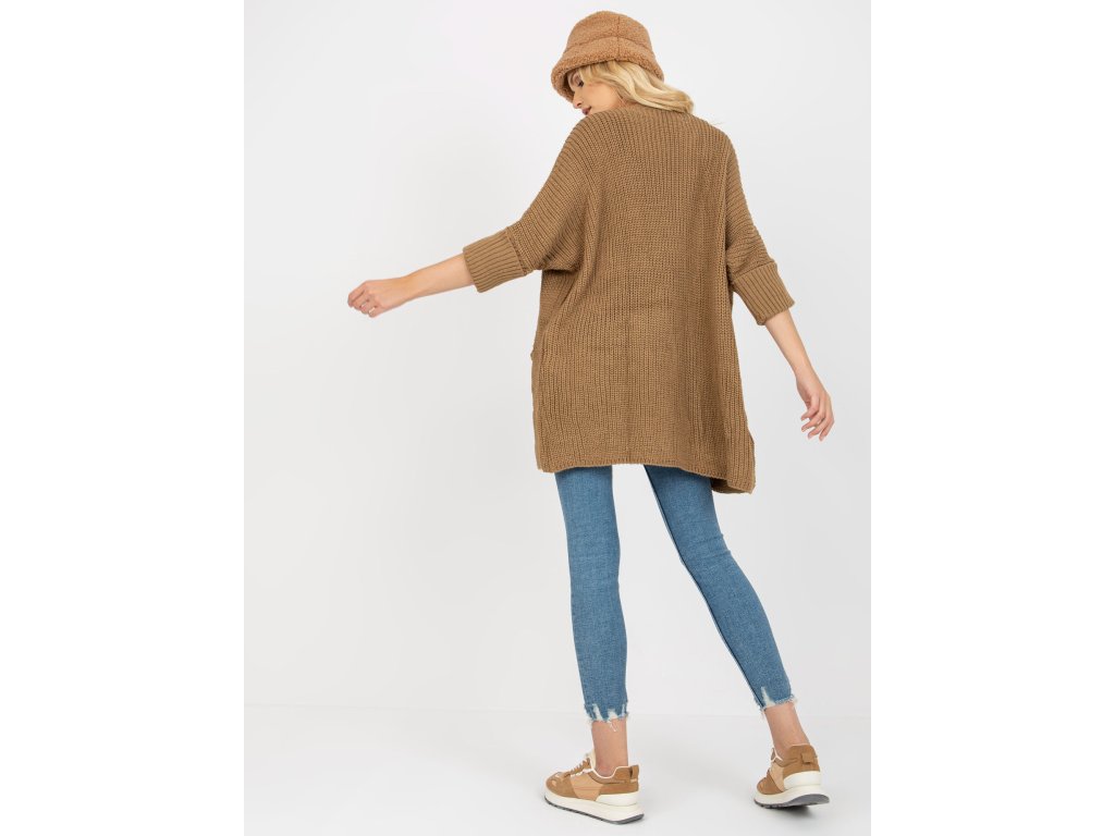Volný kardigan s 3/4 rukávy RUE PARIS je kombinací stylu a pohodlí. Je ideální pro každodenní nošení, do práce, do města nebo na procházku. Jeho klasická, tlumená kamelová barva se hodí k mnoha outfitům. Kardigan je vyroben z hladkého materiálu, zapíná se na knoflíky a má střih do A. Tento model v jedné velikosti má šířku podpaží 65 cm, celkovou délku 78 cm a délku rukávu 43 cm. Modelka má na sobě velikost 1. Rozměry modelky: výška 180 cm, obvod hrudníku 90 cm, obvod pasu 63 cm, obvod boků 93 cm. Kód produktu: LO-SW-LK-3002.98P.Doplňkové parametry