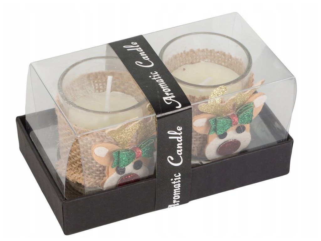 Vonné svíčky ve skle, vánoční sob, sada 2 ks
