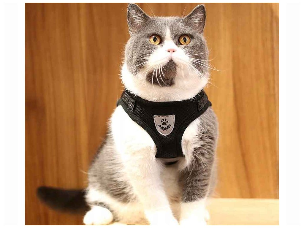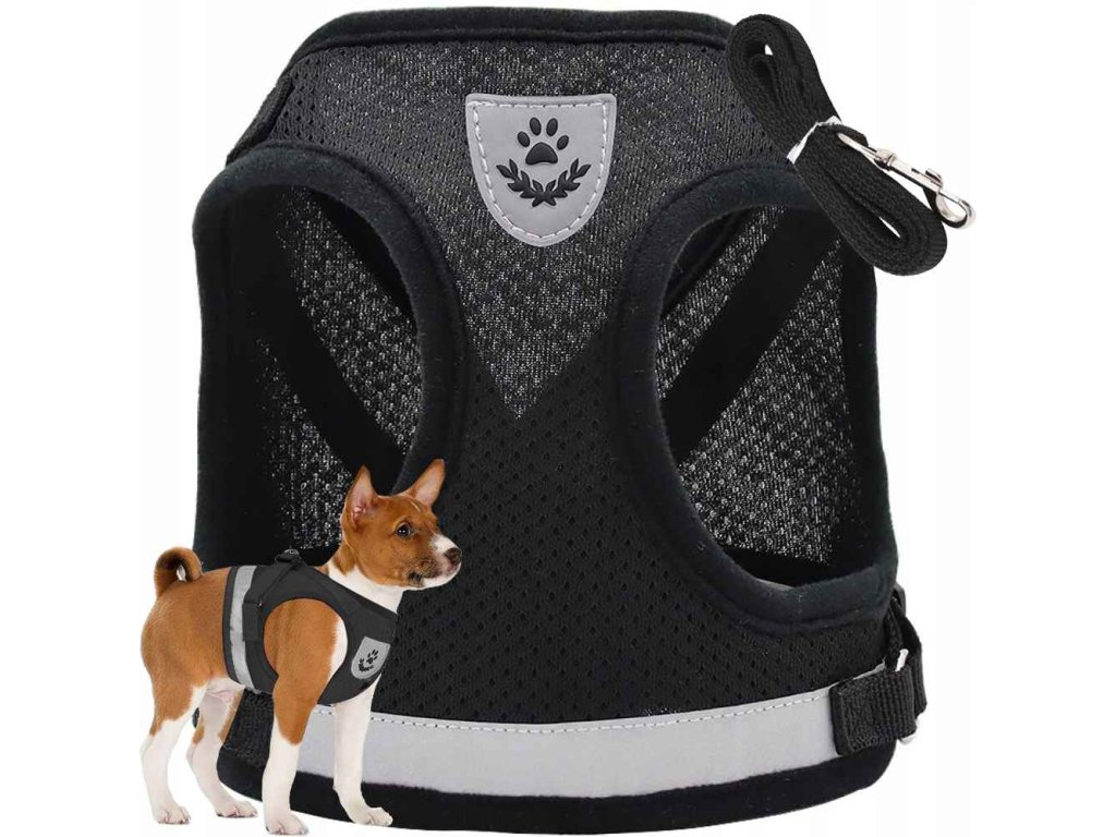 Vycházkový postroj pro psy, kočky, králíky reflexní, XS černý