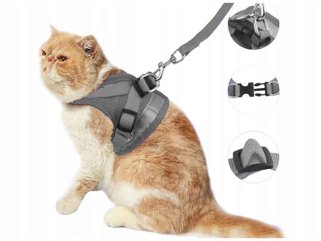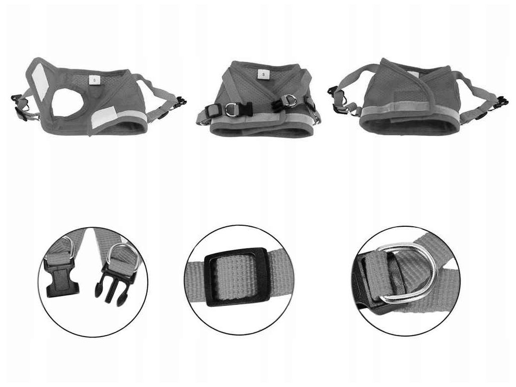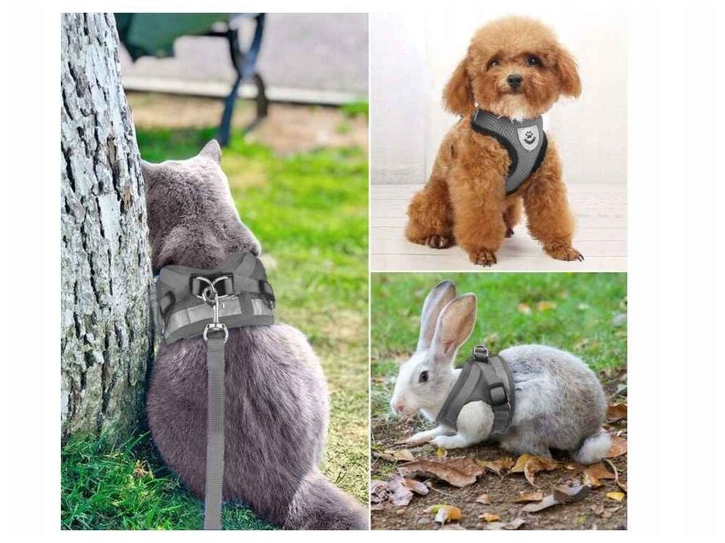 Vycházkový postroj pro psy, kočky, králíky reflexní, XS šedý