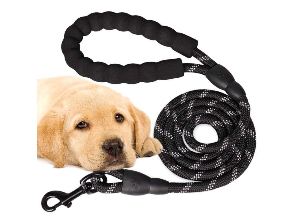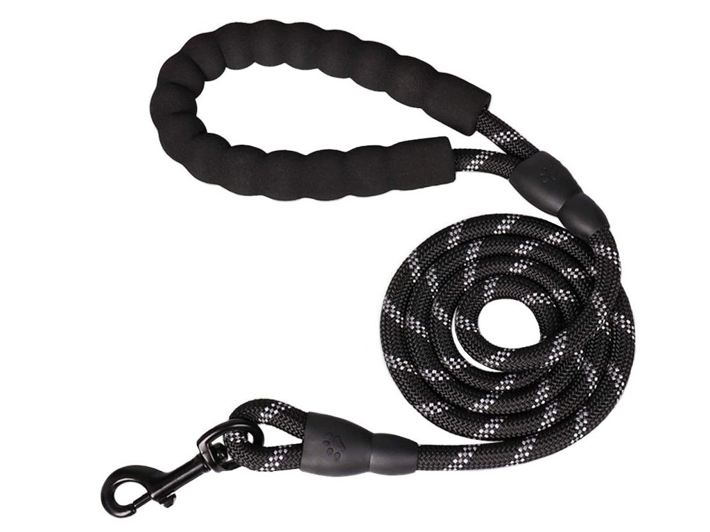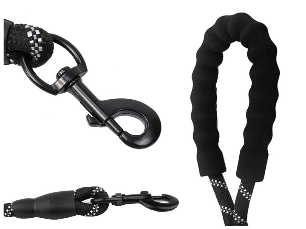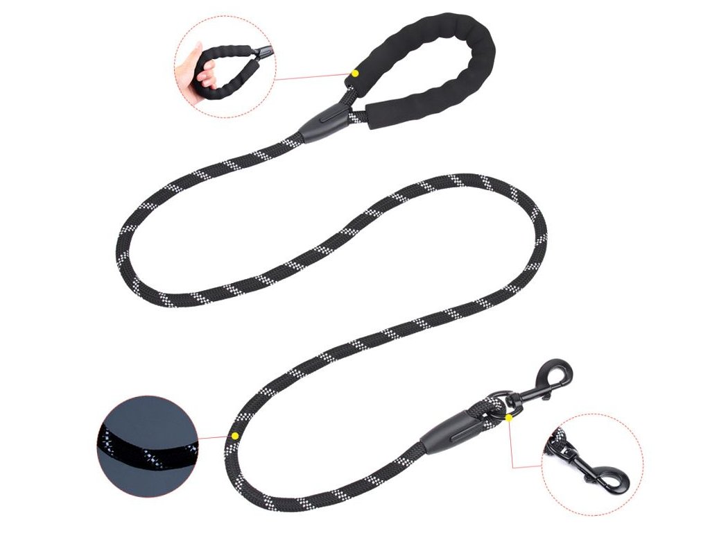Výcvikové vodítko pro psy, silné lanové vodítko s rukojetí, černé