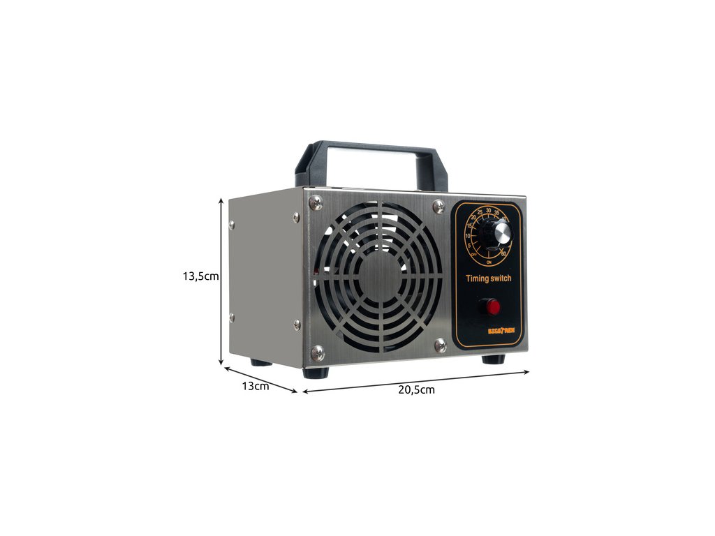 - SPECIFIKACE - materiál: nerez, ostatní: ABS + pryž + PVC + PC; variabilní výkon od 50 do 120 W; účinnost: 20 000 mg/h; časovač: 1-60 minut; napětí: 220V; maximální dosažení ppm - 70 ppm; účinnost ventilátoru až: 2800 RPM; objem vzduchu: 45 CFM; rozsah teplot pracovního prostředí: - 10 až +70 stupňů C.; maximální doba ozonizace (v závislosti na převládajících podmínkách) až 2 hodiny; napájení: síť; plocha místnosti, kterou může ozonátor vyčistit: 100-120 m2 při použití po dobu až 1 hodiny; rukojeť pro přenášení: ano; rozměry: 20,5 x 13,5 x 13 cm; hmotnost: 1,308 kg; hmotnost balíku: 1,595 kg.