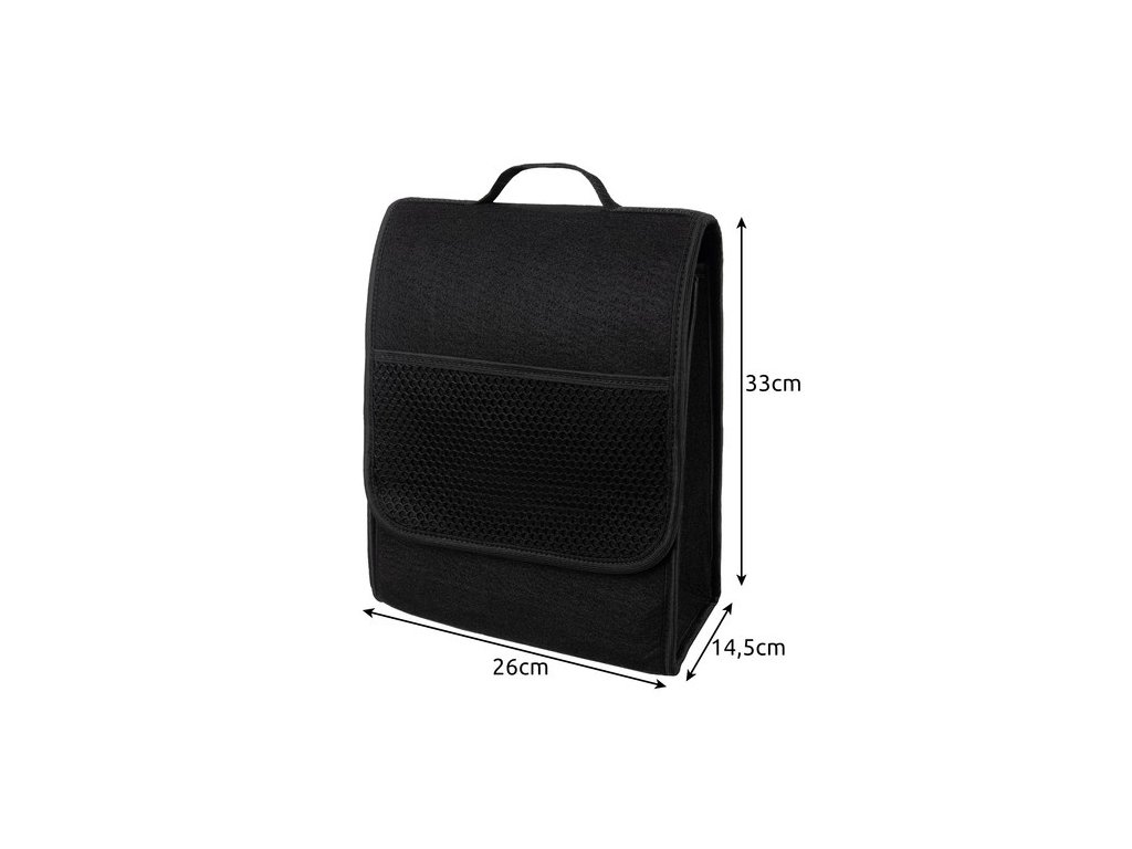 Plstěný organizér do kufru auta je praktickým doplňkem, který pomáhá udržovat v kufru pořádek a chrání jeho vnitřek. Plsť je odolný, mírně pružný a špíně odolný materiál, díky čemuž je ideální pro tento typ použití. Taška je praktickým řešením pro každého, kdo chce udržovat pořádek a chránit vnitřek kufru svého auta. Díky mnoha funkčním vlastnostem a estetickému vzhledu jde o doplněk, který může výrazně usnadnit každodenní používání vozu.