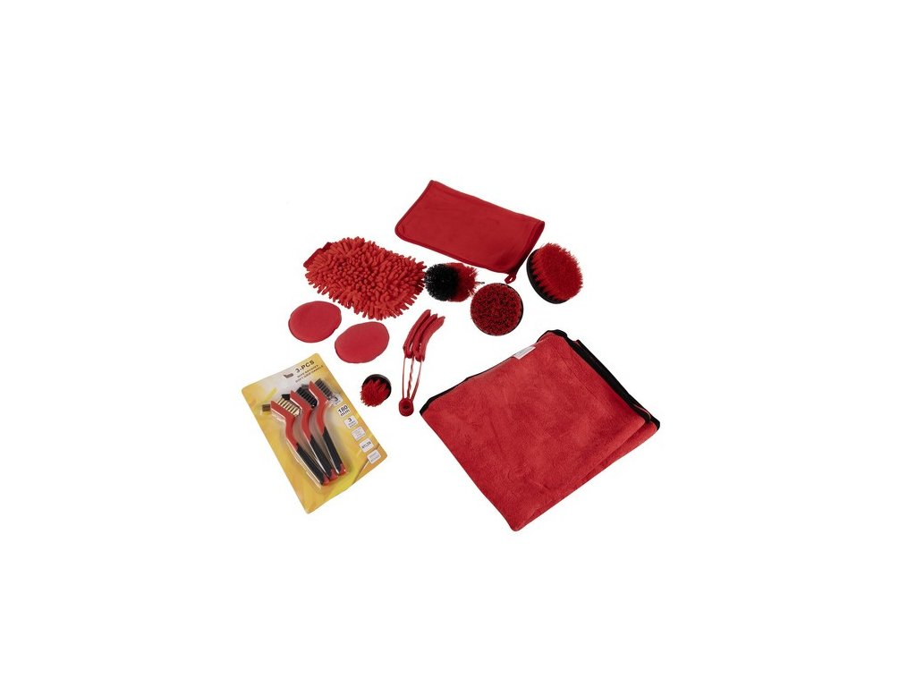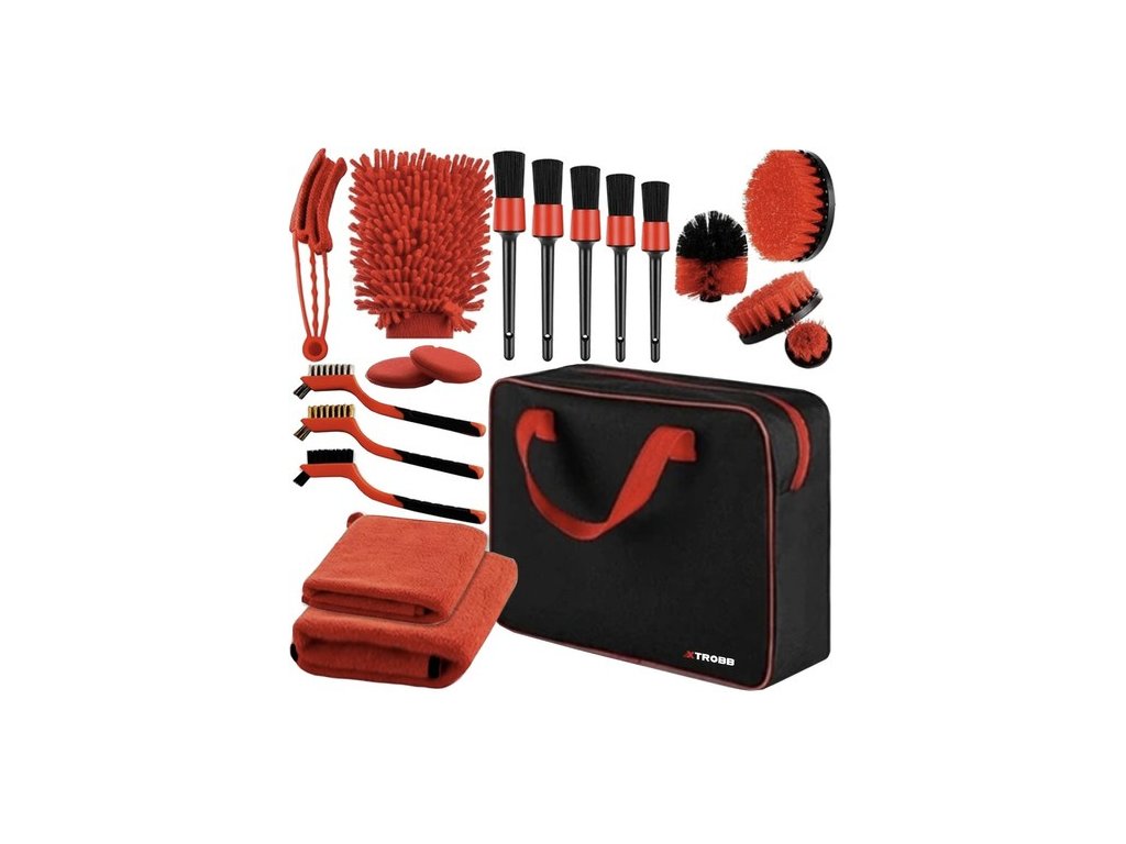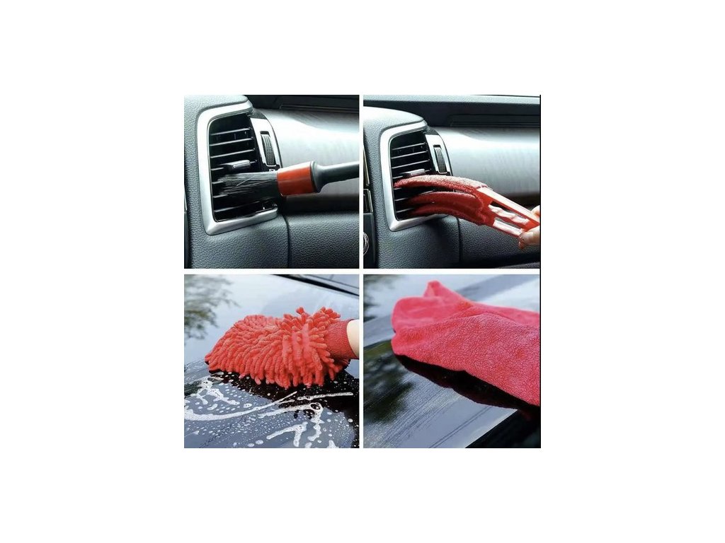 - VELKÁ SADA AŽ 19 KUSY - Tato rozsáhlá sada pro péči o auto poskytuje komplexní řadu nástrojů a příslušenství pro účinné čištění a údržbu vašeho vozidla. S kartáči, mycí rukavicí, ručníky, smetákem a praktickým pouzdrem budete mít vše, co potřebujete, aby vaše auto vypadalo co nejlépe .