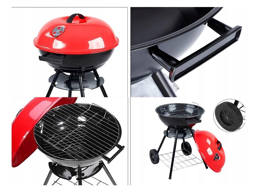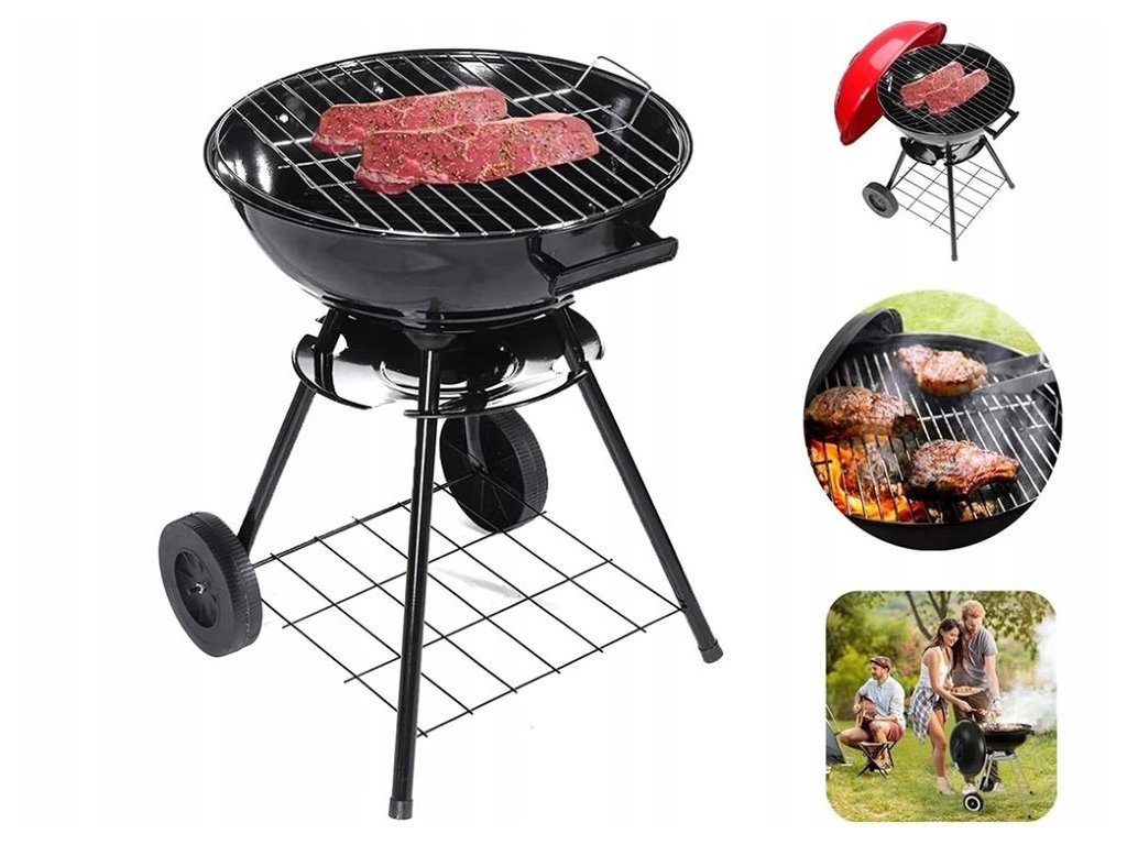 Zahradní gril na dřevěné uhlí, na brikety, kulaté víko, přenosný