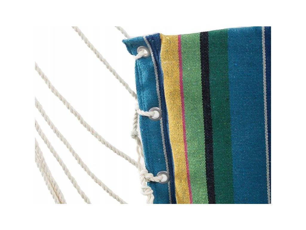 Je vyrobeno z odolného materiálu, stejně jako hustě tkané šňůry. Díky tomu všemu je houpací síť odolná a propustná pro vzduch, takže její používání je velmi příjemné. Houpací síť je zavěšena na dřevěném rámu, který zpevňuje konstrukci a zabraňuje kroucení a zvyšuje stabilitu a bezpečnost.