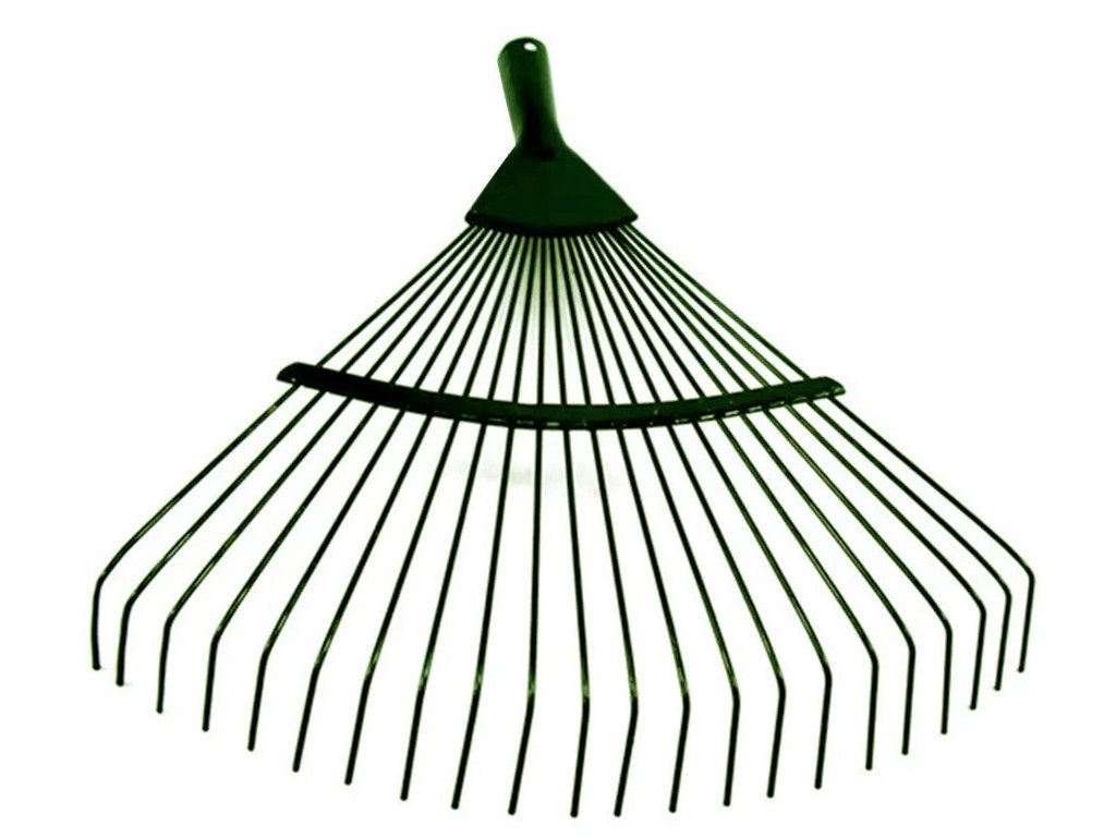Praktické kovové hrábě pro sběr listí na zahradě a sběr jehličnatých trnů, šišek a mnoha dalších nepotřebných zelených odpadů.