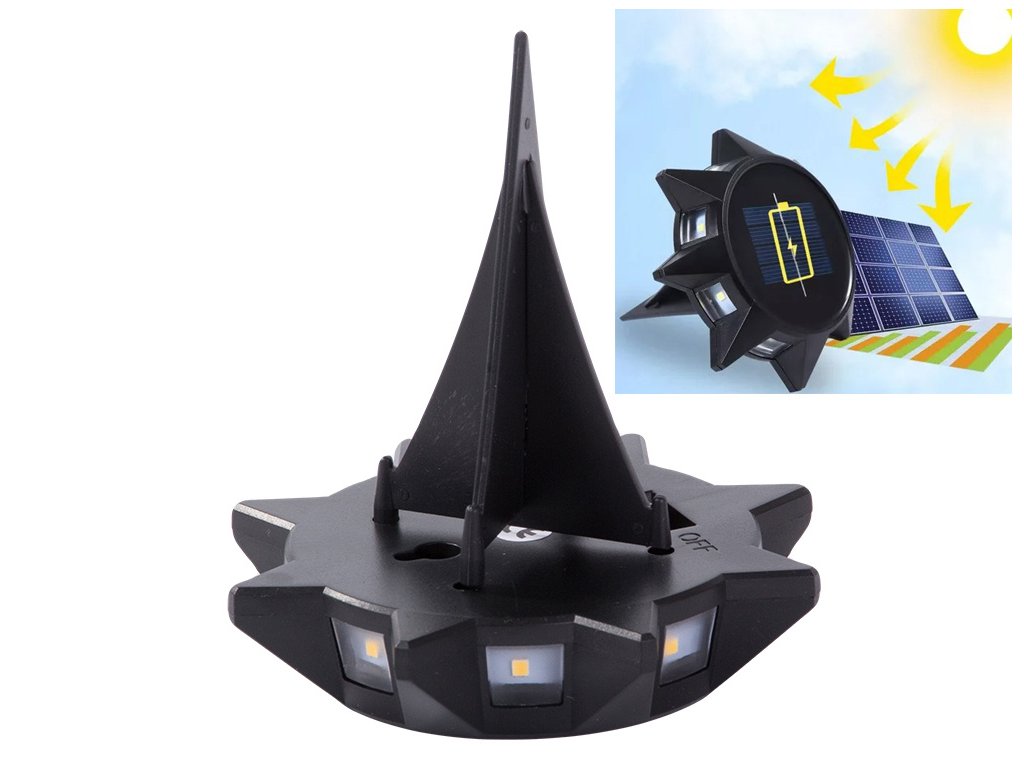 Osvětlení se automaticky zapne, když se setmí. Během dne solární panel v krytu lampy přeměňuje sluneční energii na elektřinu a ukládá ji do baterií.