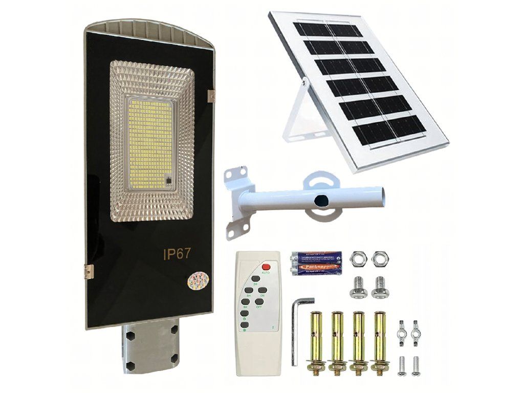Zahradní lucerna Solární lampa na sloup Silná 50W Panel Ulice 100 LED