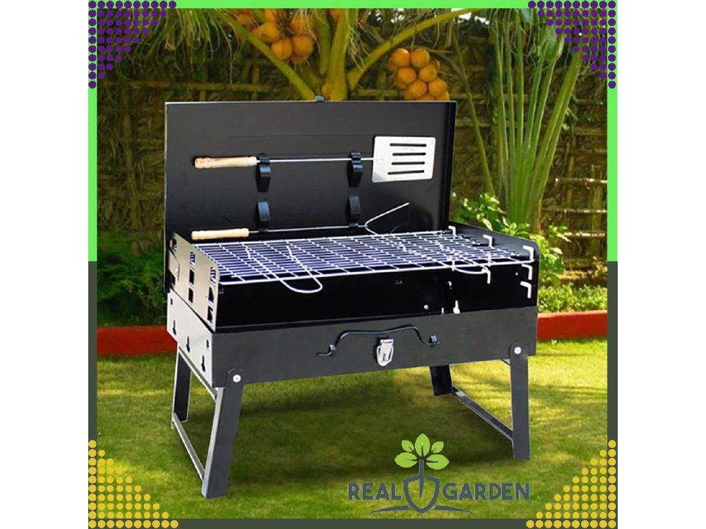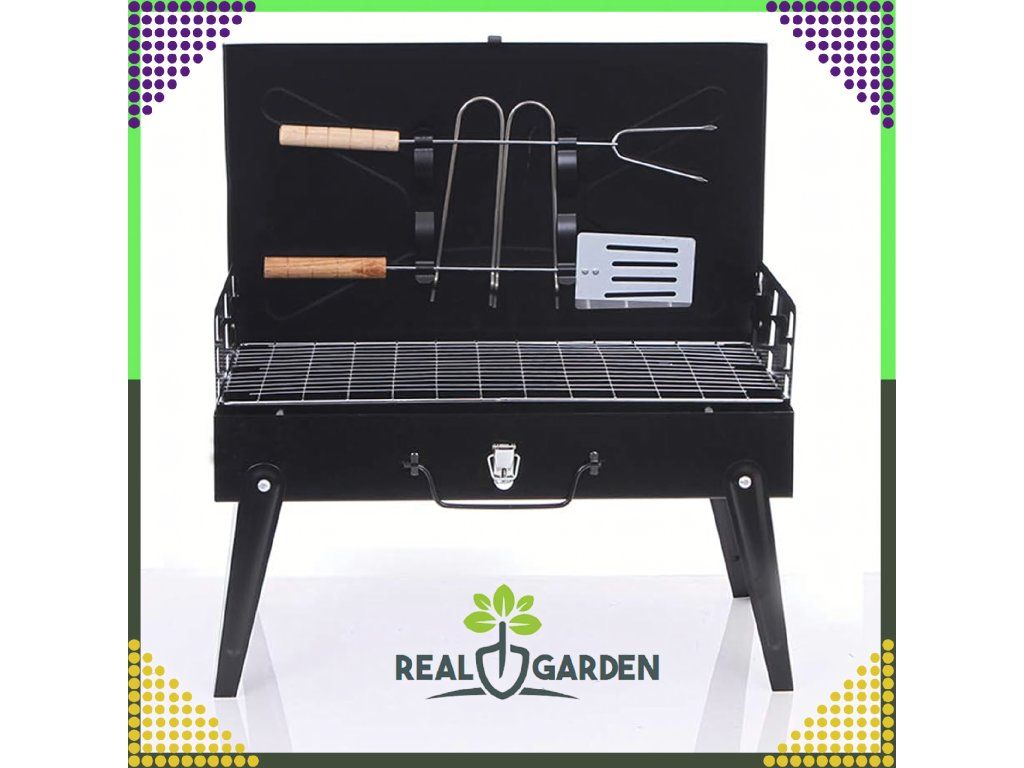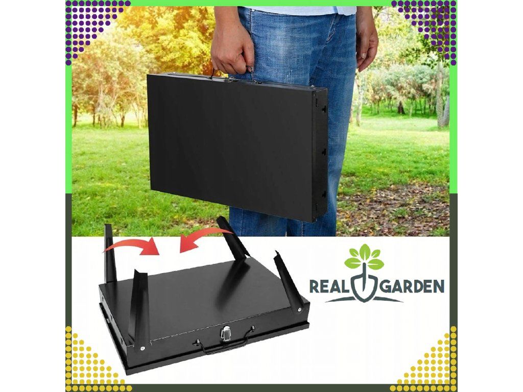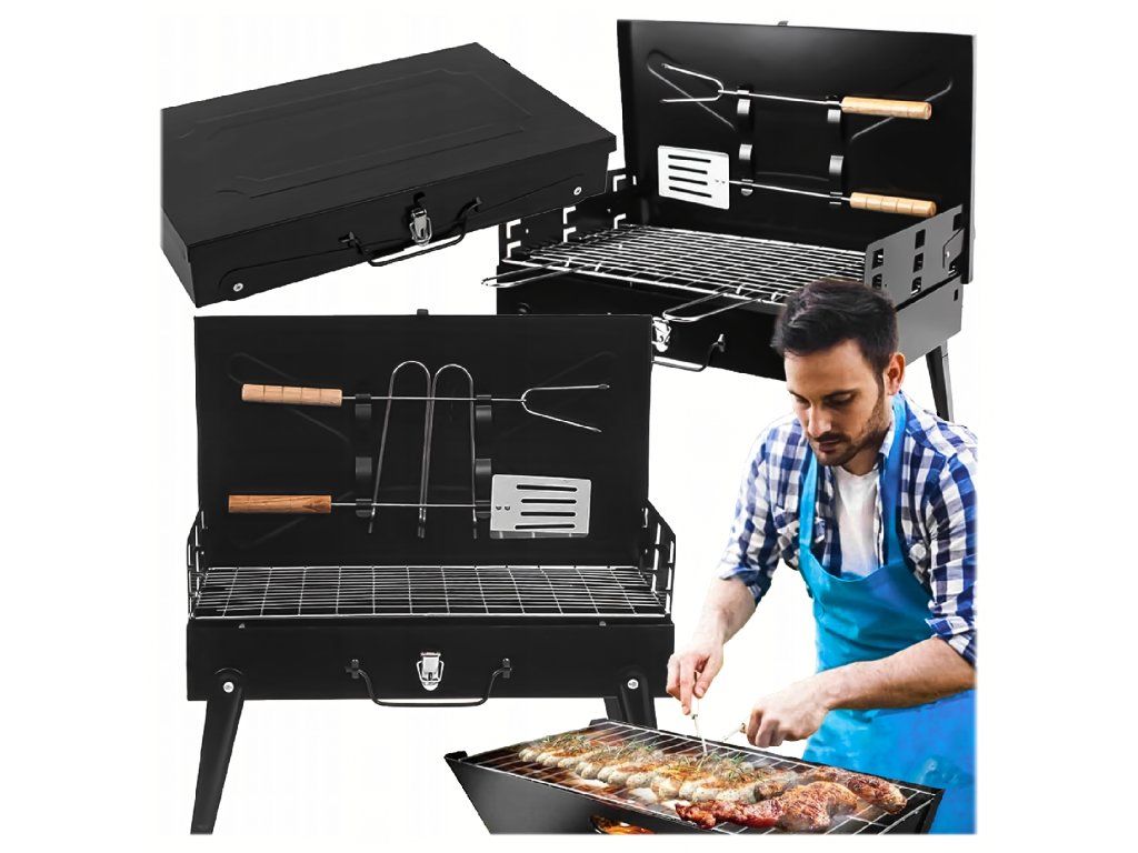 ✔️ Skládací ✔️ Přenosný ✔️ Rozměry: 44x27x47 ✔️ Barva: Černá ✔️ Rošt + Příbory