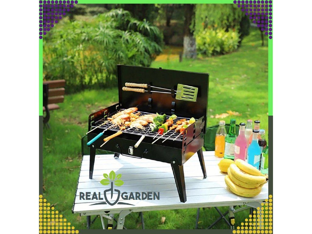 ⭐ Přenosný skládací kempingový a zahradní uhlíkový gril + příbory ⭐