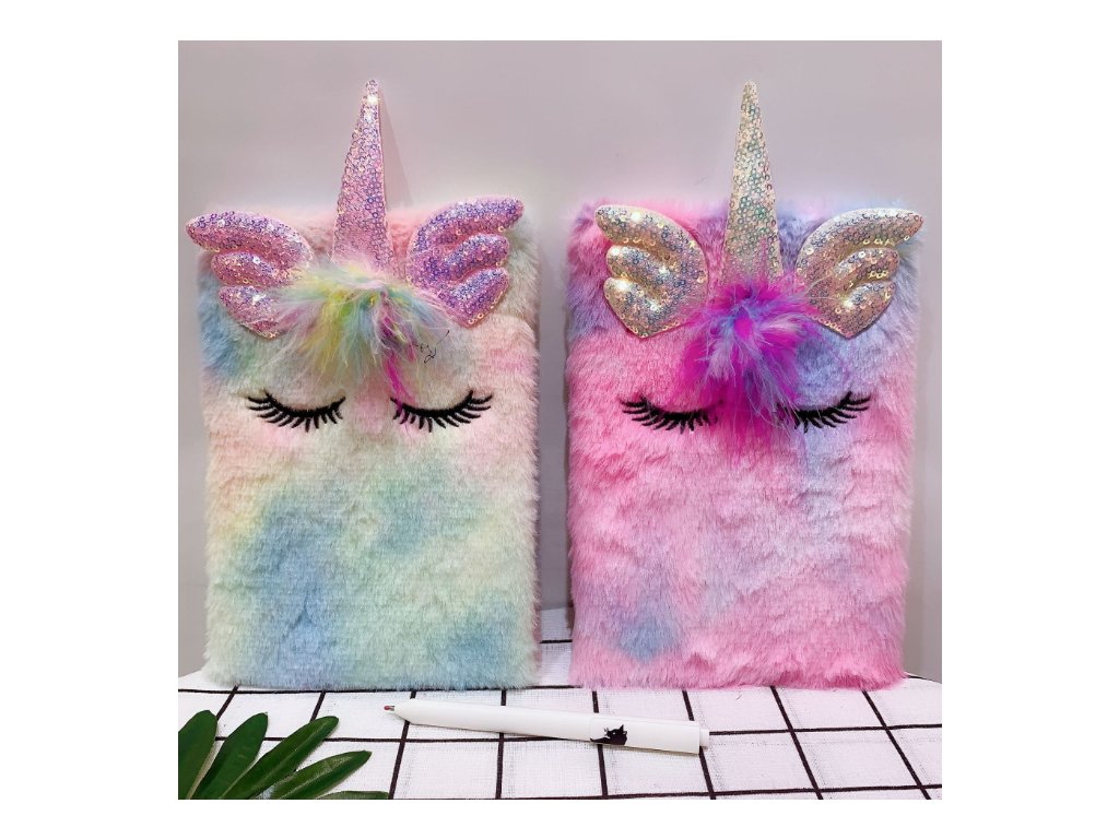 Zápisník, notes, roztomilý deník PLYŠOVÝ JEDNOROŽEC (směs barev) A5 - 1 ks