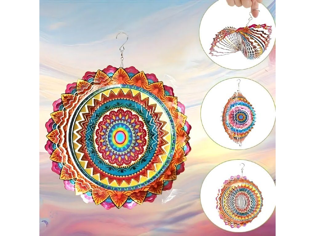 Závěsná ozdoba, větrná korálka 12” 3D mandala do zahrady nebo pokoje