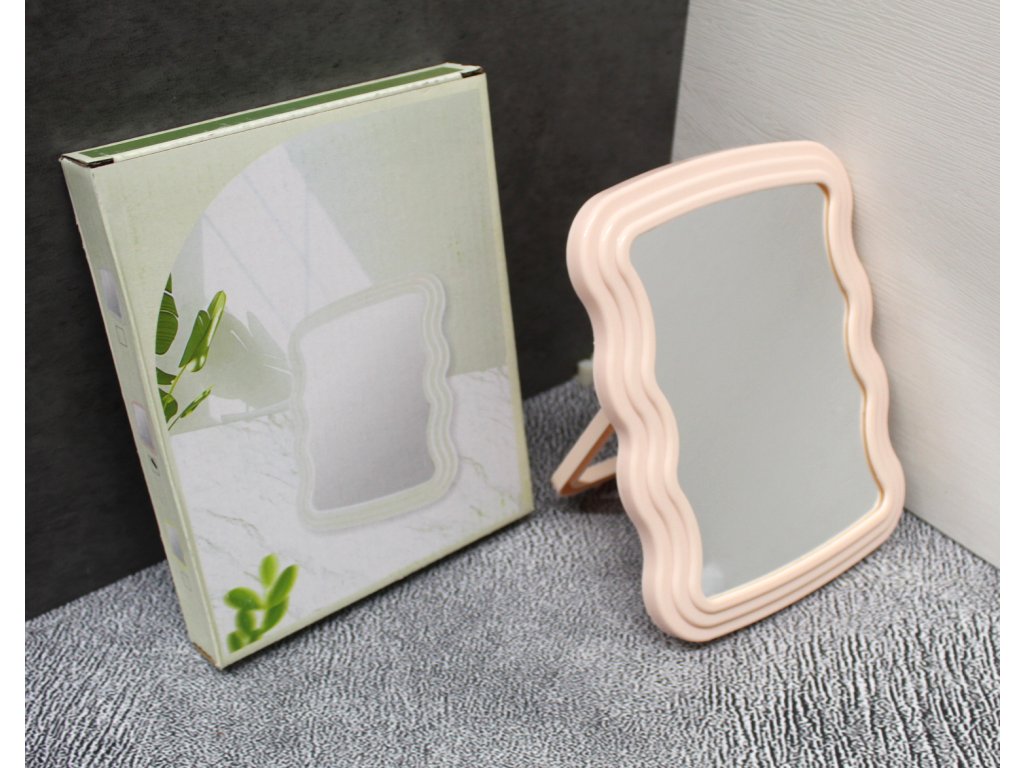Zrcadlo, zrcadlo z plastu, vlnitý rám, obdélníkové, 18x14 cm, růžové, jednostranné
