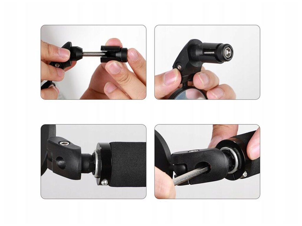 Rychlá a snadná montáž na řídítka pomocí rukojeti se šroubem. Zrcátko se otáčí o 360 stupňů a lze jej otáčet a naklánět v libovolném směru, což vám umožní přizpůsobit jej vaší poloze na kole.
