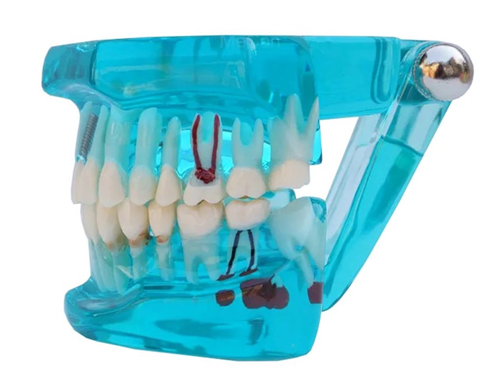 Zubní model čelist, model zubů, modrý