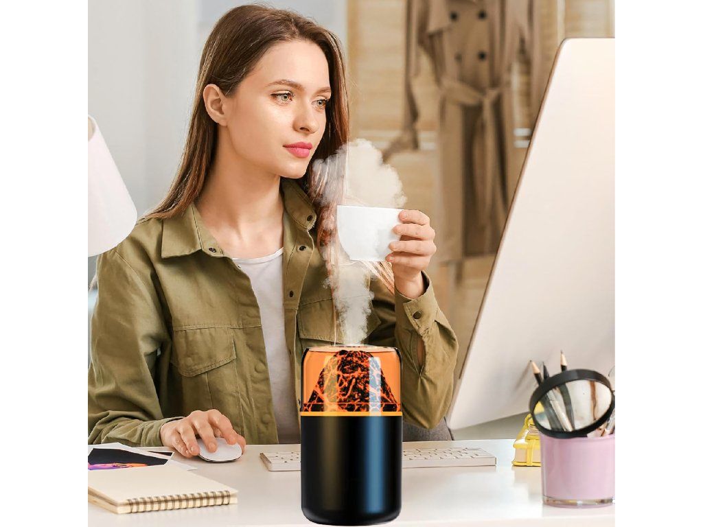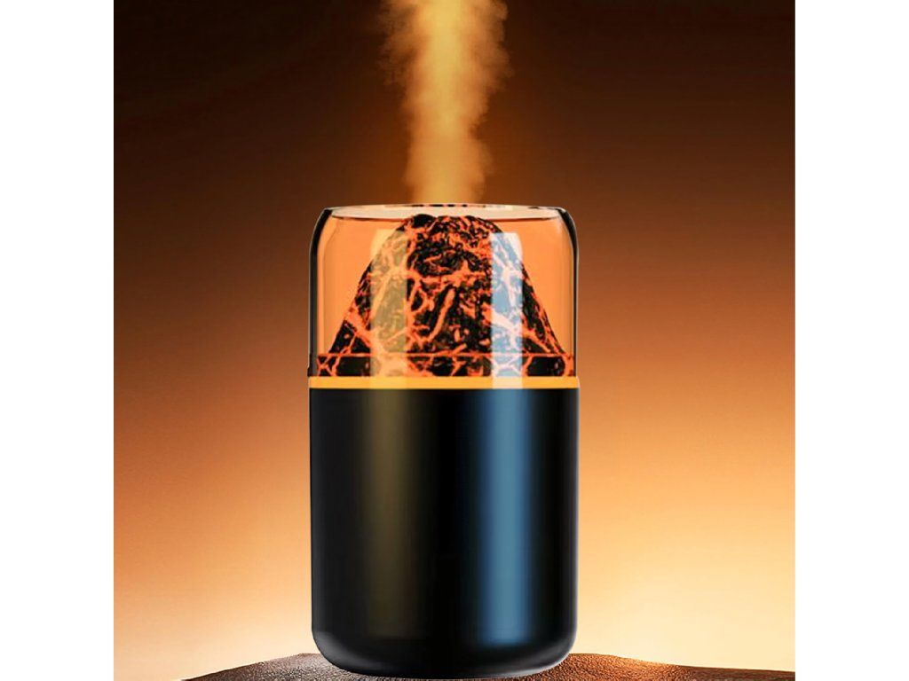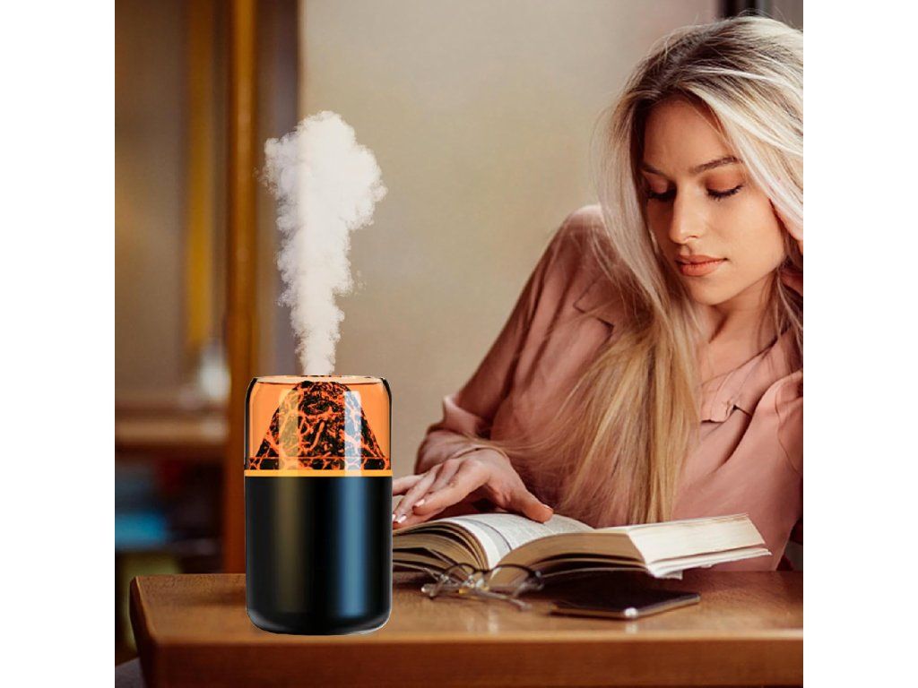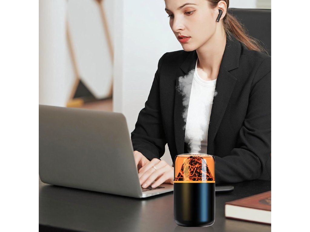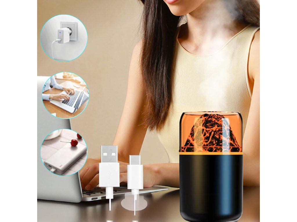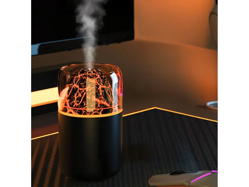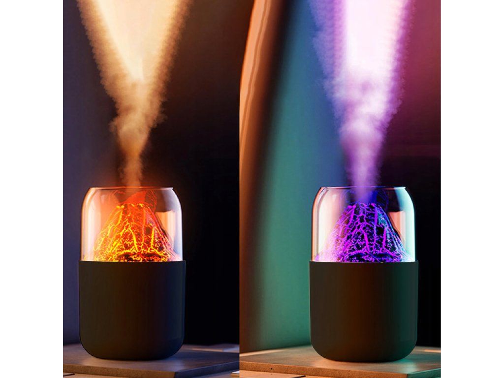 Zvlhčovač vzduchu, difuzér vůní, LED, aromaterapie, efekt ohně a sopky